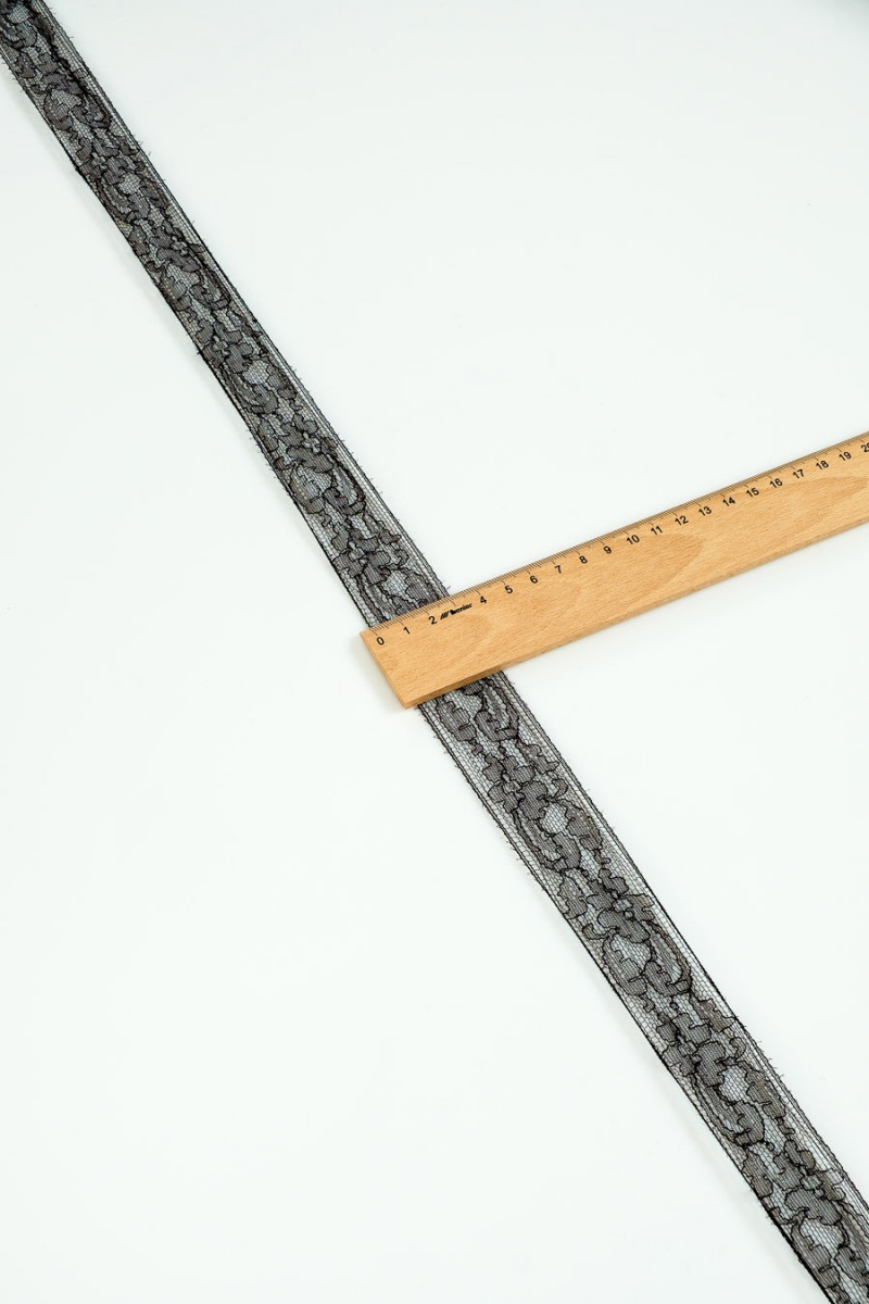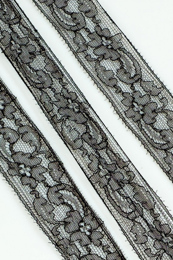 Italiensk blondebånd i sort. Tynd, delikat med blomstermotiv. Perfekt til efterbehandling af bluser, kjoler, nattøj.
