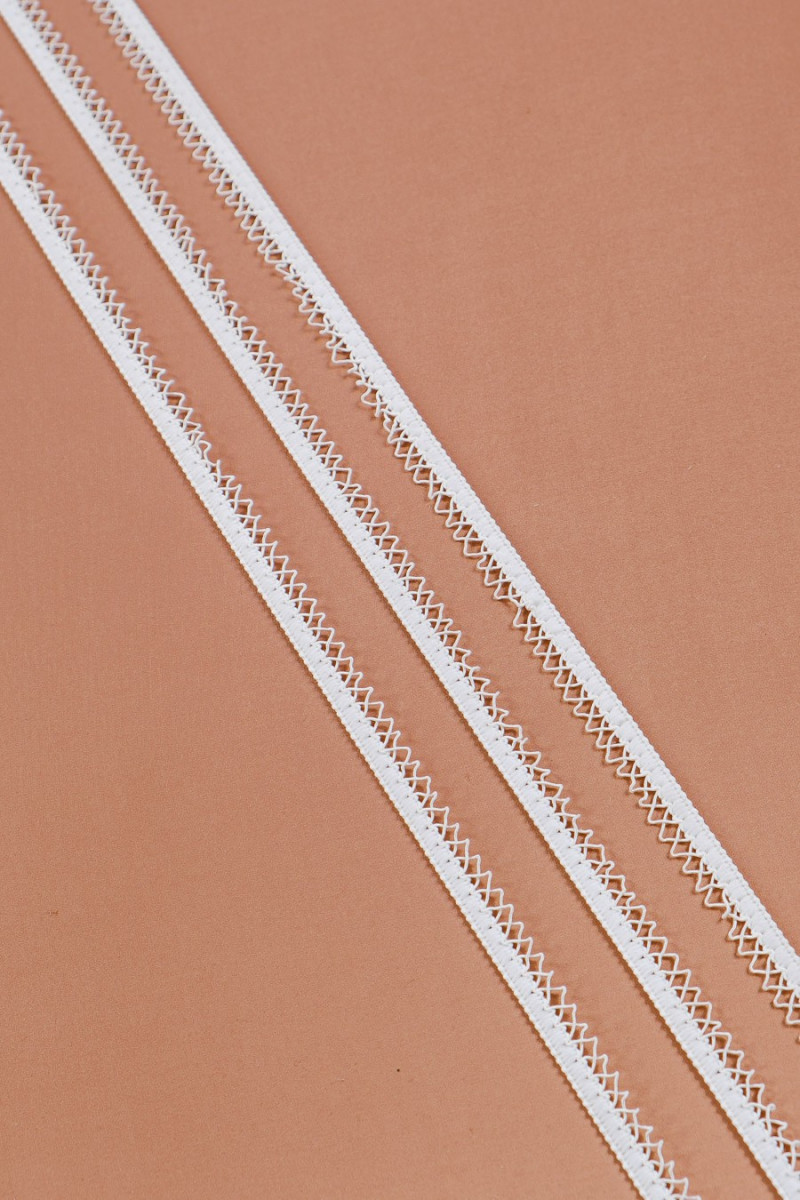 Italiensk haberdashery tape i ecru farve. Lavet af elastikbånd, hvortil en strengflæse blev syet. Ideel til efterbehandling af bryllups- og bomuldsstoffer.