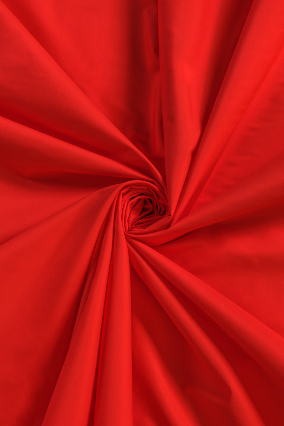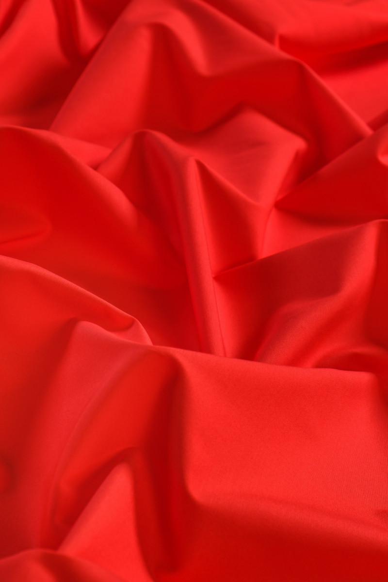Italiensk bomuldsstof med tilsætning af elastan i mørk orange. Elastisk, mat, stift stof - perfekt til syning af bukser, nederdel, shorts eller kjoler.