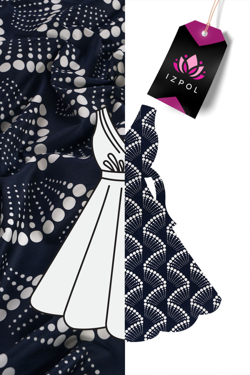 Italiensk bomuldselastik i mørk marineblå med et motiv af uregelmæssige prikker i cremefarve. Bomuld er en 100% naturlig fiber. Bomuldsstoffer er holdbare, slides ikke hurtigt, bevarer deres egenskaber i lang tid, er perfekt åndbare, åndbare, hvilket giver høj brugerkomfort. Let elastisk, mat, uigennemsigtigt stof - perfekt til syning af kjole, bukser, nederdel eller shorts.