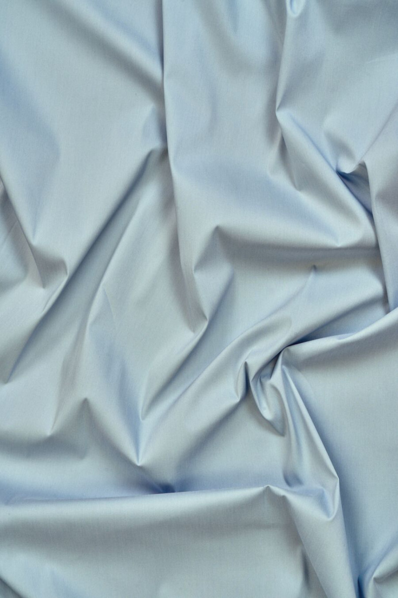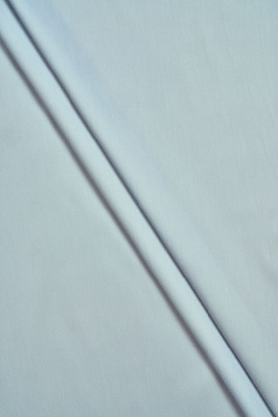 Materiale til skjorter i duegrå (med blå nuance) vævet af bomuld, polyamid og elastan. Elastisk stof, velegnet til syning af let monteret tøj.