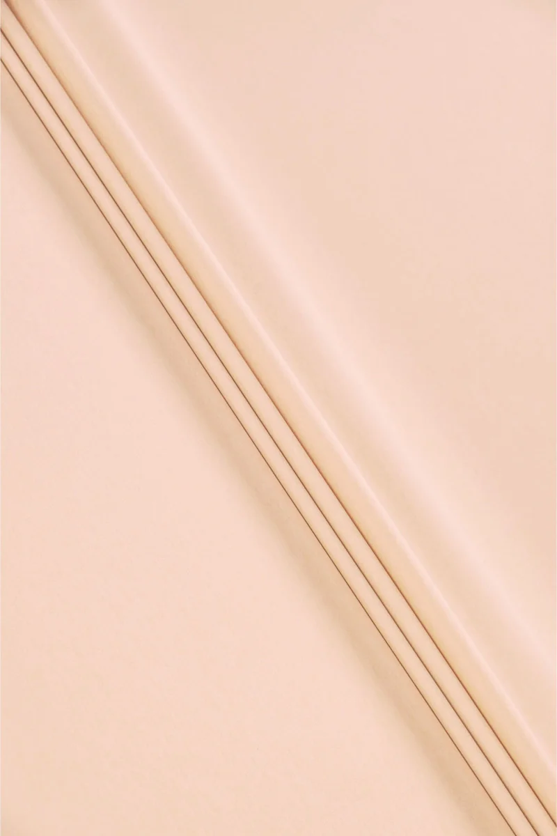 Italiensk 100% bomuldsstof i lys abrikosfarve. Et ikke-elastisk stof af medium tykkelse og en twillvævning beregnet til syning af en kjole, nederdel eller bukser. Et naturligt stof af meget god kvalitet, uerstattelig om foråret og sommeren.