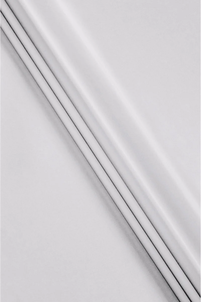 Italiensk bomuldsstof med tilføjelse af elastan i lysegrå. Elastisk stof af medium tykkelse og glat, tæt vævet til syning af kjole, nederdel eller bukser. Naturligt stof i meget god kvalitet, og tilsætningen af elastan gør det mere behageligt at bruge og krøller mindre. Stoffet er uerstatteligt om foråret og sommeren.