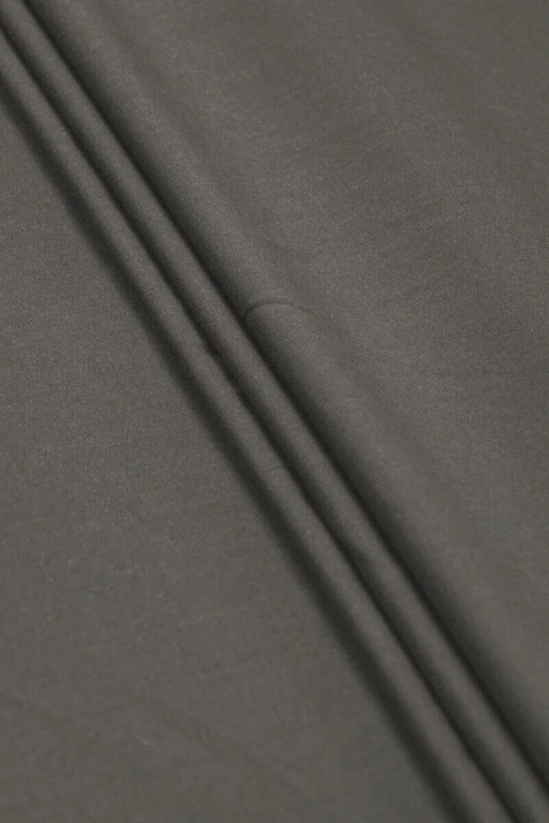 Italiensk kostumestof lavet af bomuld med en blanding af elastan i grå. Stoffet har en kipervævning, er elastisk, meget blødt og behageligt at røre ved. I greb og struktur ligner den uldstof. Den er perfekt til at sy en kjole, et kostume, nederdel eller bukser. Naturligt stof i meget god kvalitet, og tilsætningen af elastan gør det mere behageligt at bruge og krøller mindre.