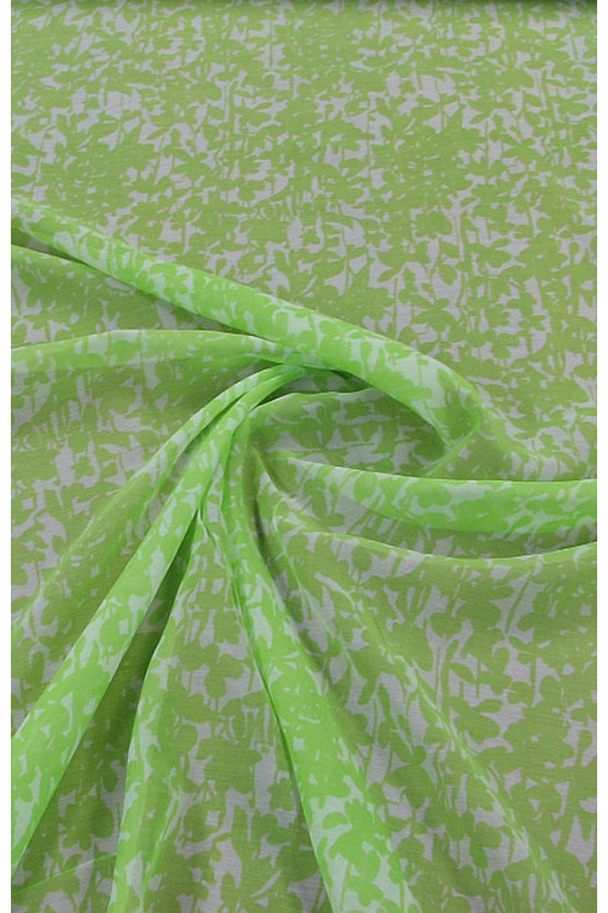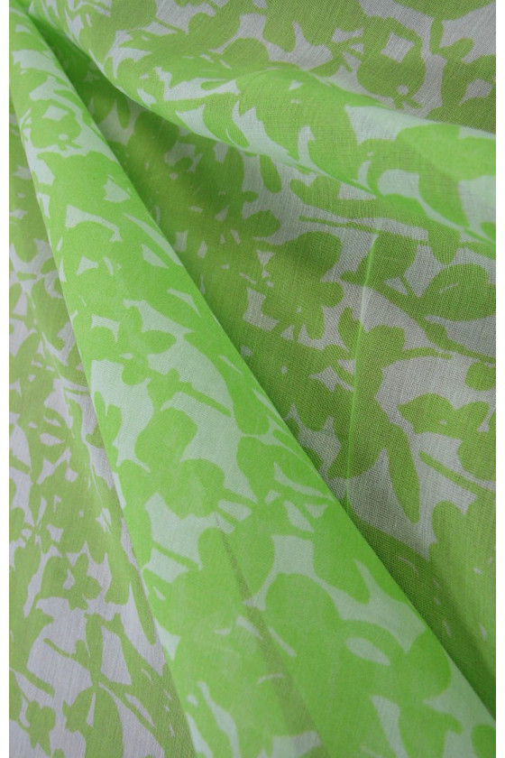 Italiensk bomuldsbatistestof med et grønt og cremefarvet, fint blomstermønster. Silke-bomuldsbatiste er et delikat, luftigt stof, der er ideelt til sommervarmen. Det kan bruges til at sy tynde skjorter, kjoler, tunikaer.