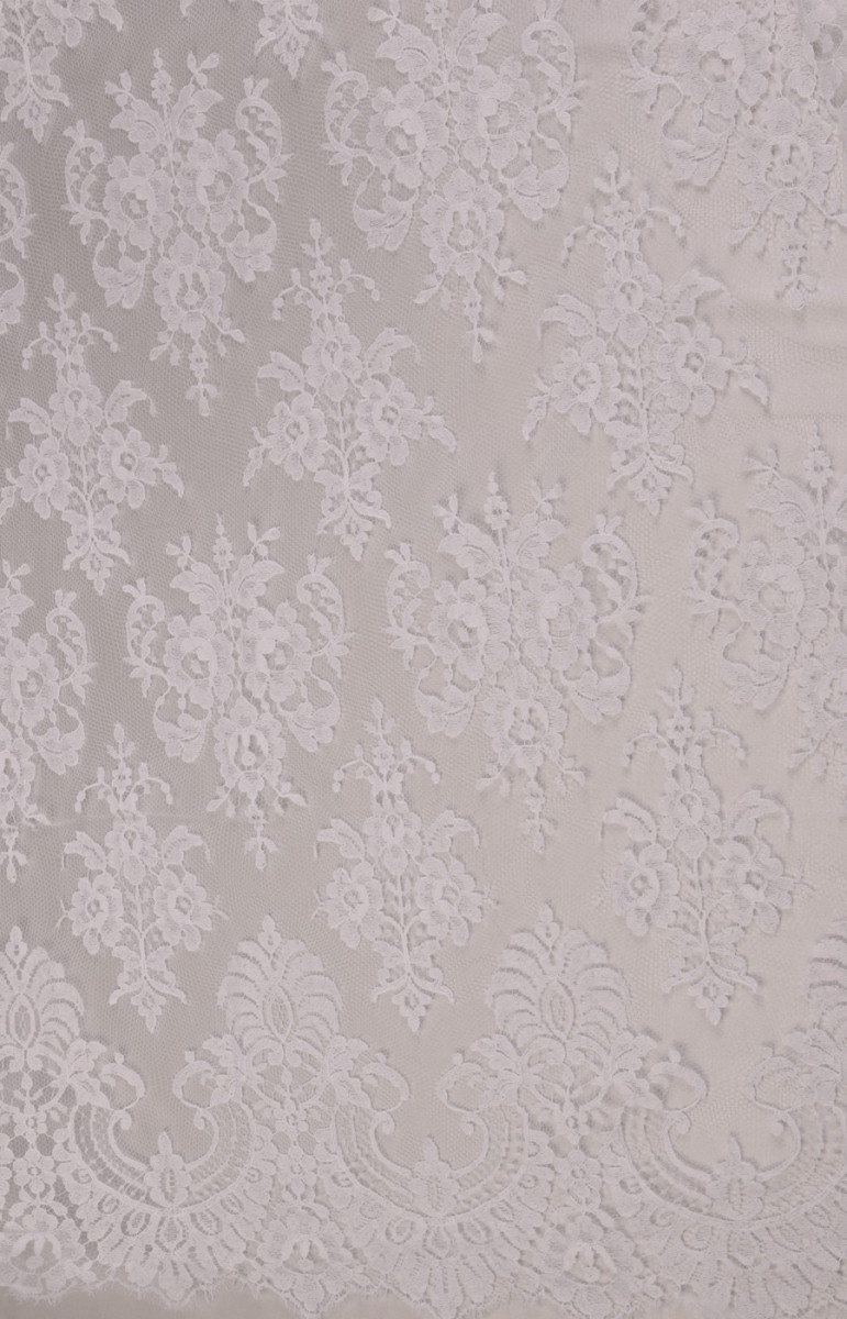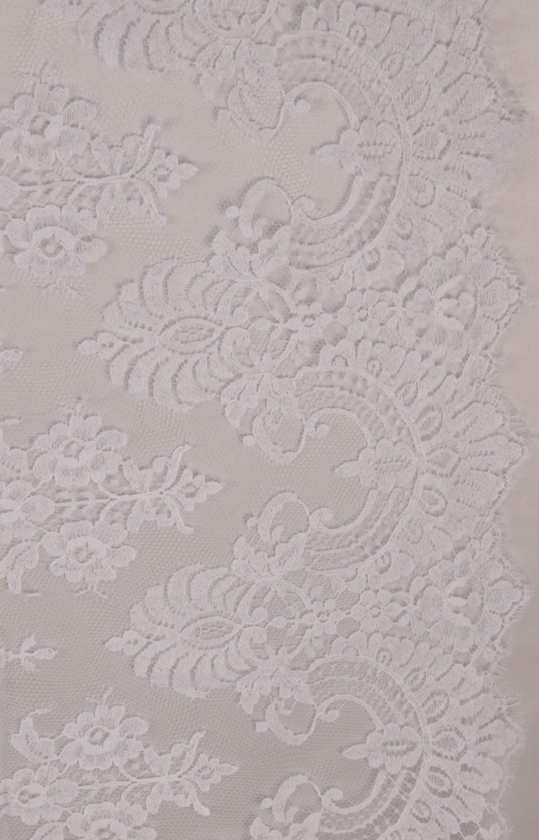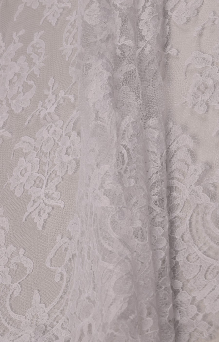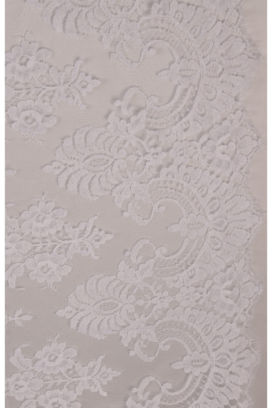 Den sidste bryllupsblondekupon med dimensioner på 120 cm * 180 cm, med et klassisk, tæt mønster i hvid cremefarve, afsluttet med en tand på begge sider. Blonderne er delikate, bløde at røre ved.