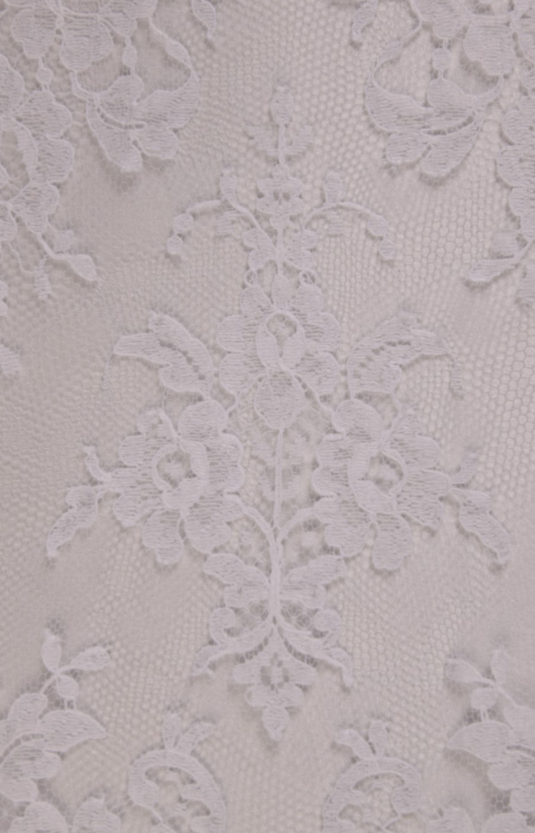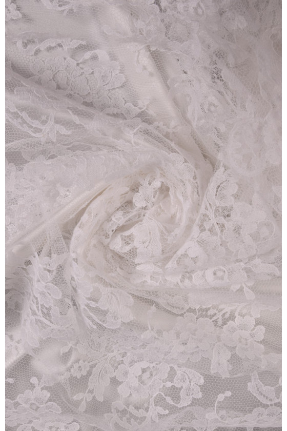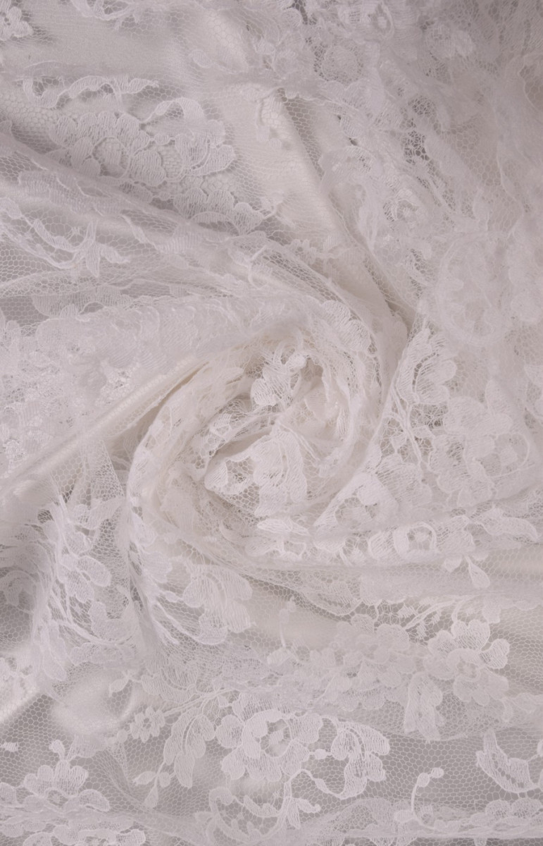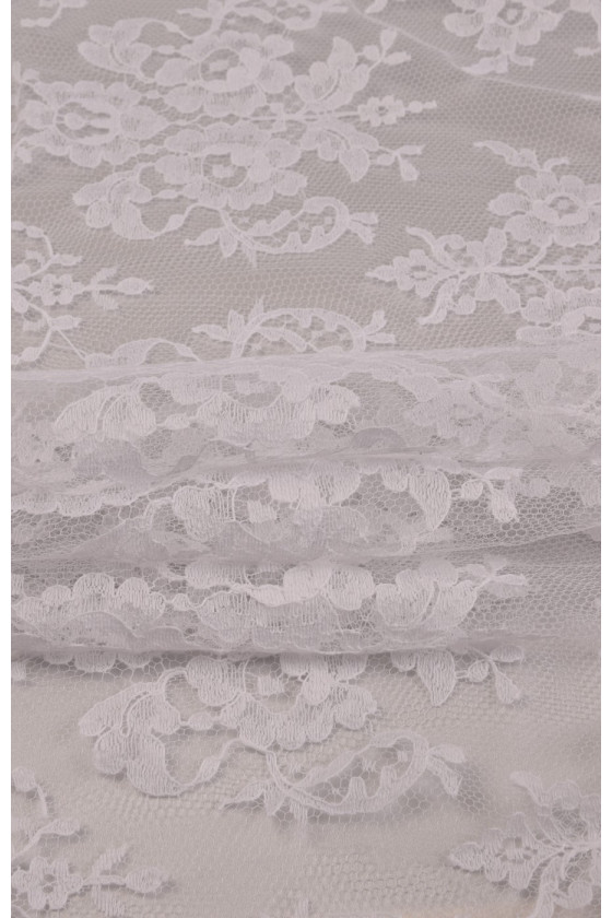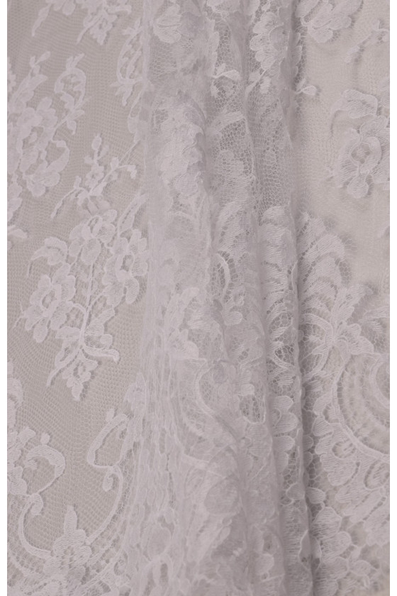 Den sidste bryllupsblondekupon med dimensioner på 120 cm * 180 cm, med et klassisk, tæt mønster i hvid cremefarve, afsluttet med en tand på begge sider. Blonderne er delikate, bløde at røre ved.