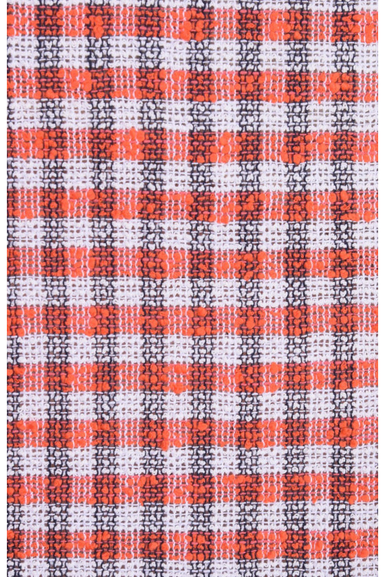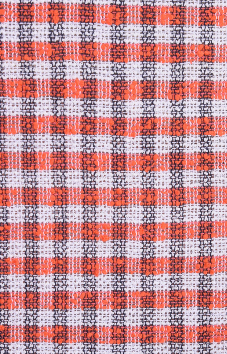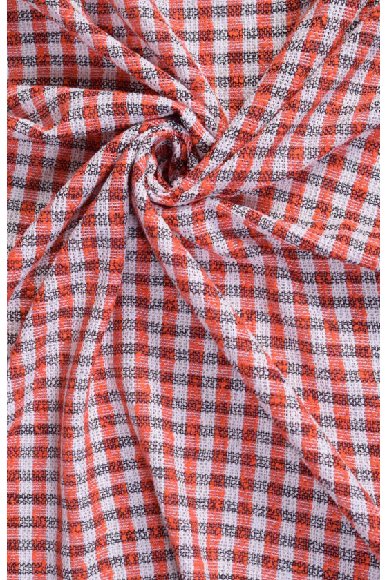 Chanel kostume stof med orange, hvid og sort tern. Perfekt til sæt som: jakke + nederdel eller kjoler. Kræver foring.