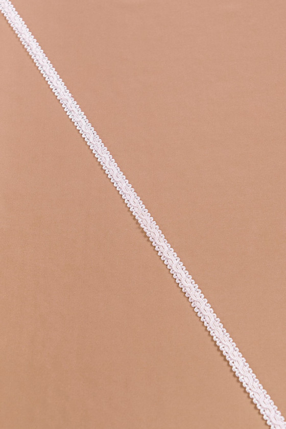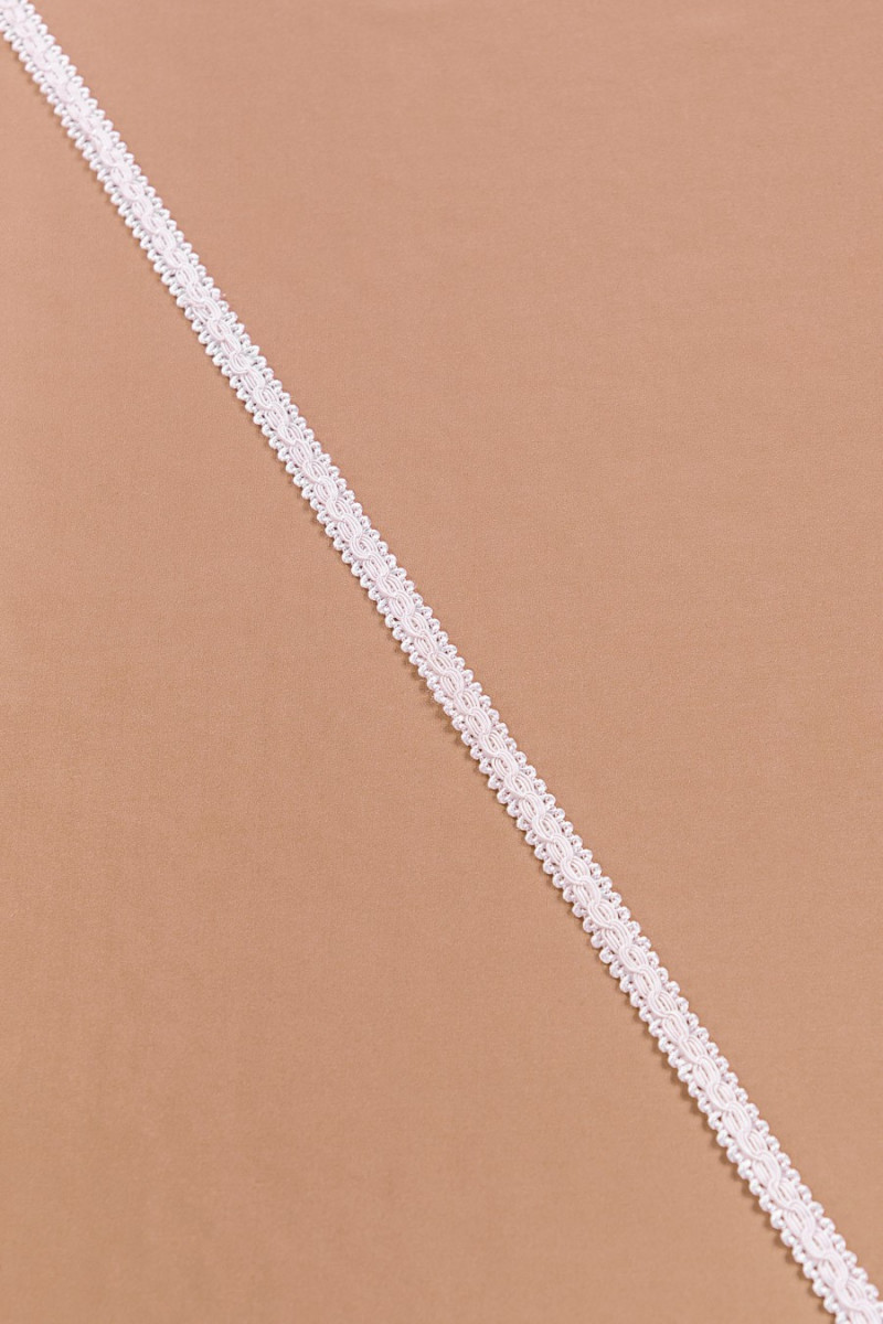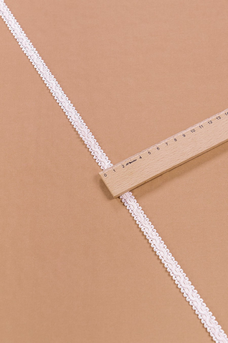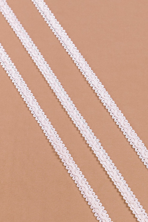 Italiensk haberdashery tape i perlefarve. Motivet af en "fletning" lavet af snor. Ideel til efterbehandling af bryllups- og bomuldsstoffer.