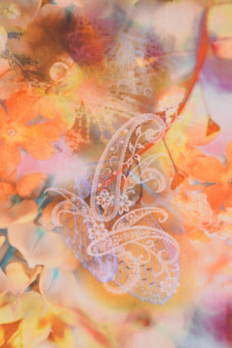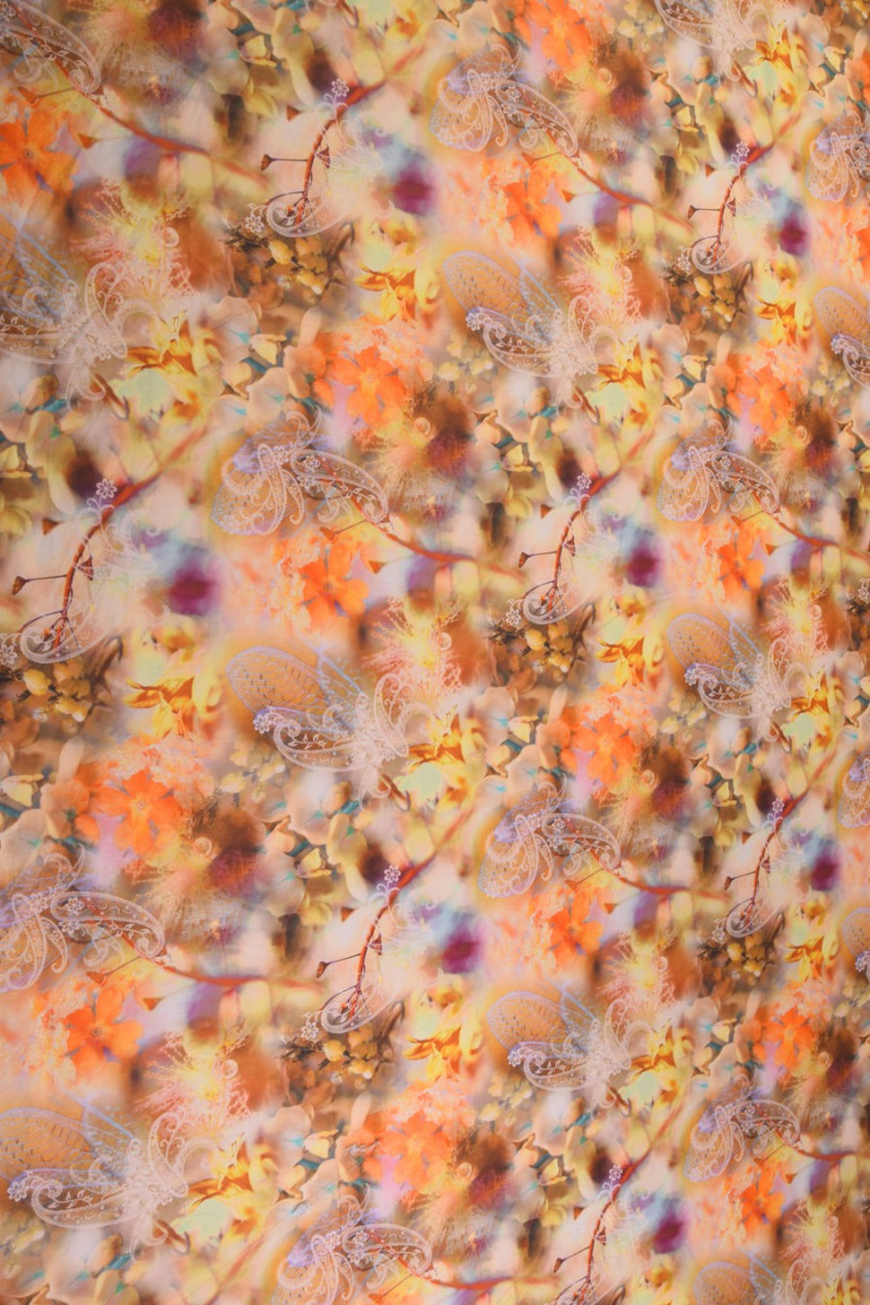 Italiensk bomuld 100% naturlig i varme gule og orange farver. Et forslag til syning af sommerkjoler, nederdele, bukser.