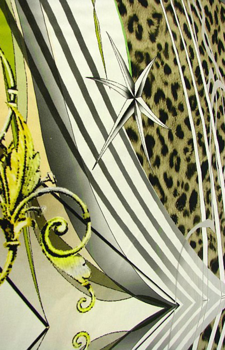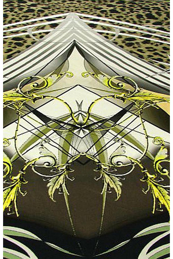 Smuk italiensk bomuld - elastik i en kupon med mål på 135 cm* 140 cm. Et interessant orientalsk mønster i sort, brun og sennep.