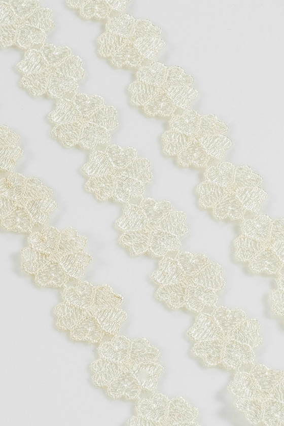 Italiensk guipure tape i ecru farve. Motivet af forbundne blomster.