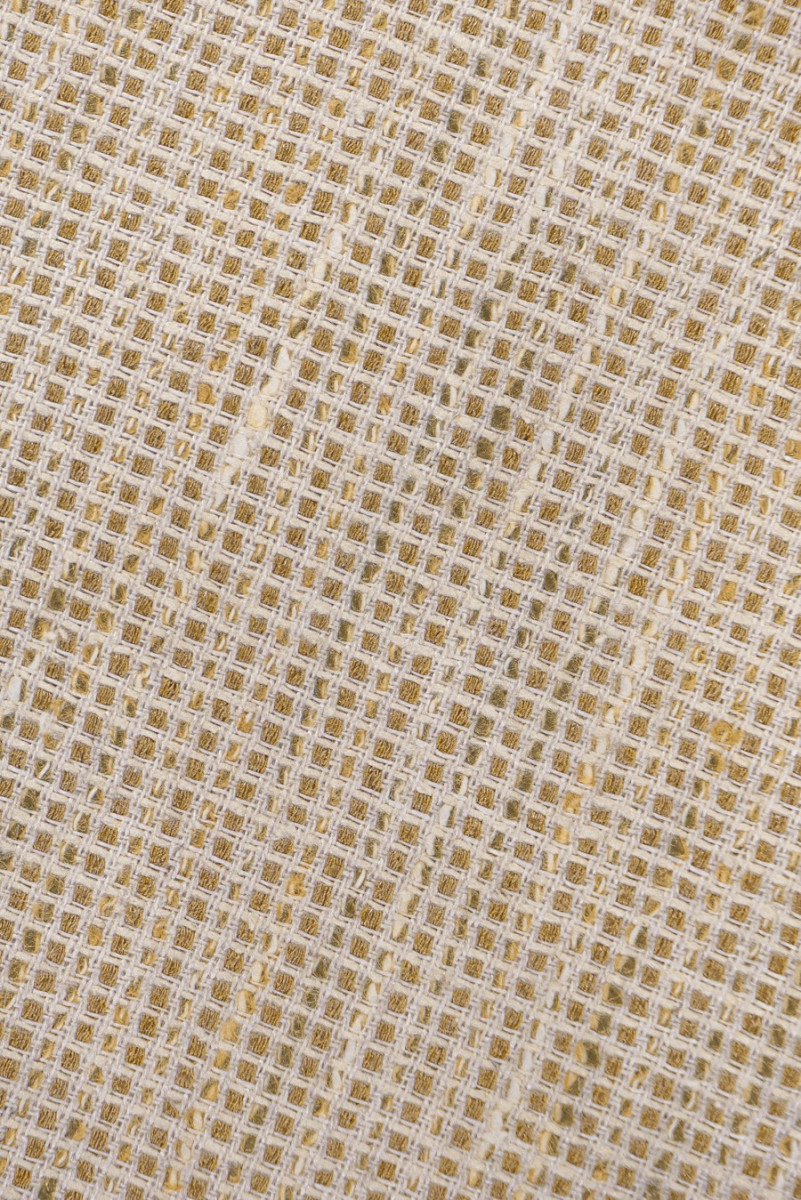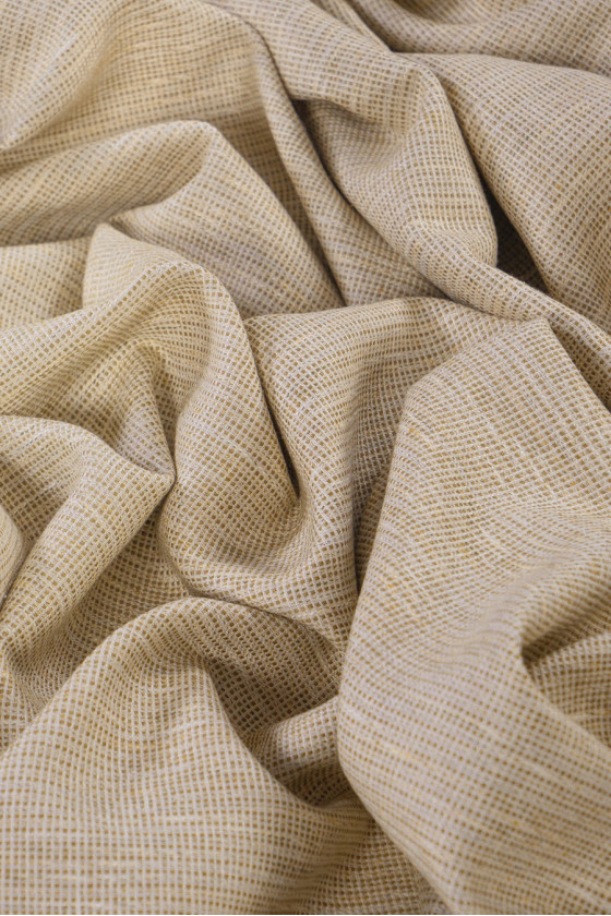 Bomuld og silke kostume stof, vævet af beige og ecru tråde. Naturligt og åndbart materiale. Vi anbefaler det til syning af forårssommerkjoler, jakker eller som dekorativt stof.