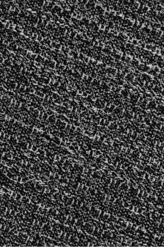 Italiensk chanel kostume stof i hvid og sort med sølv lurex tråd. Et blødt, kødfuldt stof med en kompakt vævning - perfekt til syning af en kjole, nederdel, kostume eller frakke.