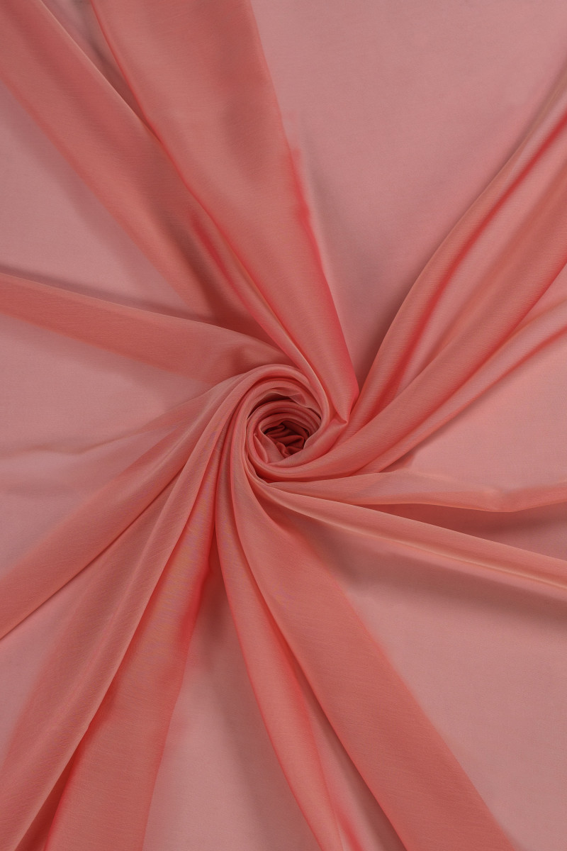 Italiensk chiffon polyesterstof med en interessant vævning af to farver tråde - beige og pink, som skaber en tofarvet effekt. Chiffon er et meget delikat, luftigt og gennemsigtigt stof.