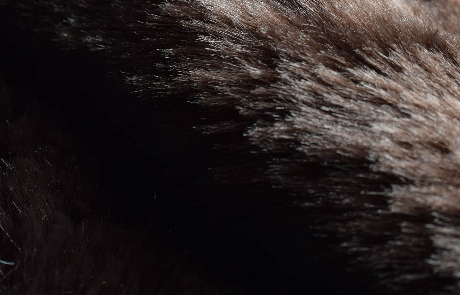 Økologisk pels af meget god kvalitet. Et realistisk look, der ligner naturlige pelsfrakker. Stoffet er meget tykt.