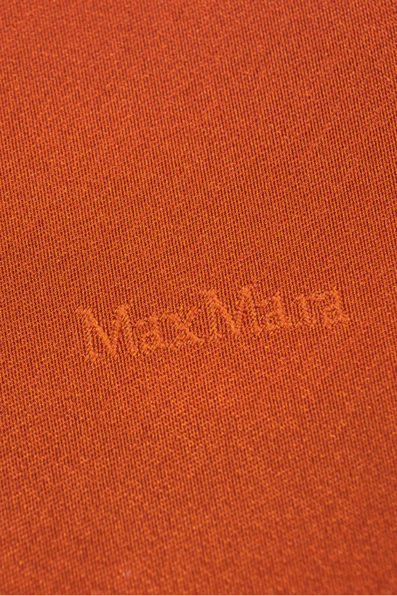 Italiensk, elastisk for i rødlig-orange farve. Underskrevet med navnet på et velkendt modehus. Elastisk, blødt, let skinnende stof. Perfekt til foring af frakker, jakker, veste, jakker.