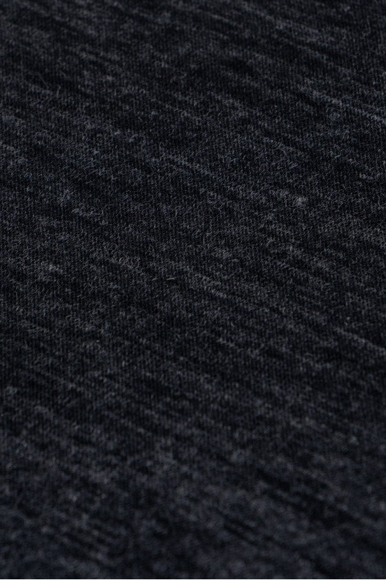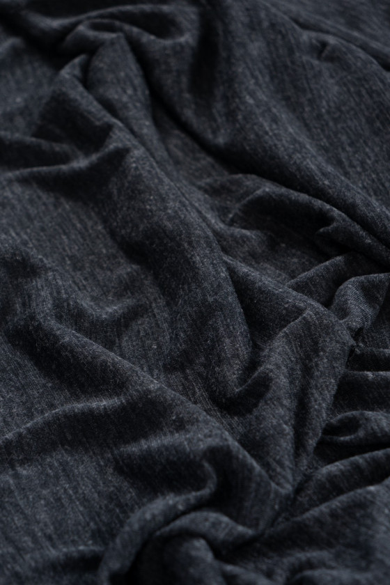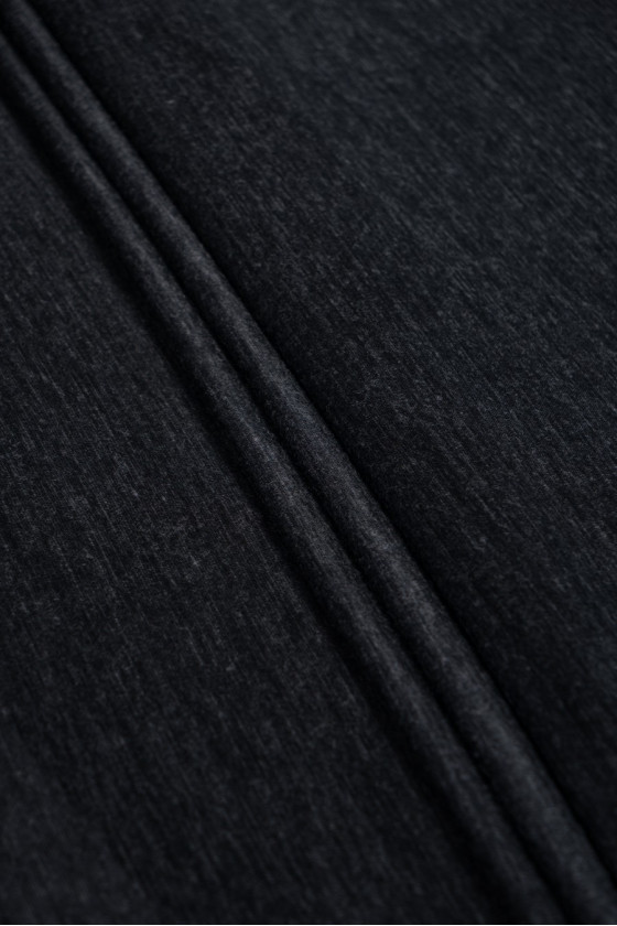 Italiensk sweater strikket stof i grafitfarve - melange, vævet af naturlig uld med en blanding af akryl. Tynd, gennemsigtig, behagelig at røre ved, perfekt til syning af en sweater eller bluse.