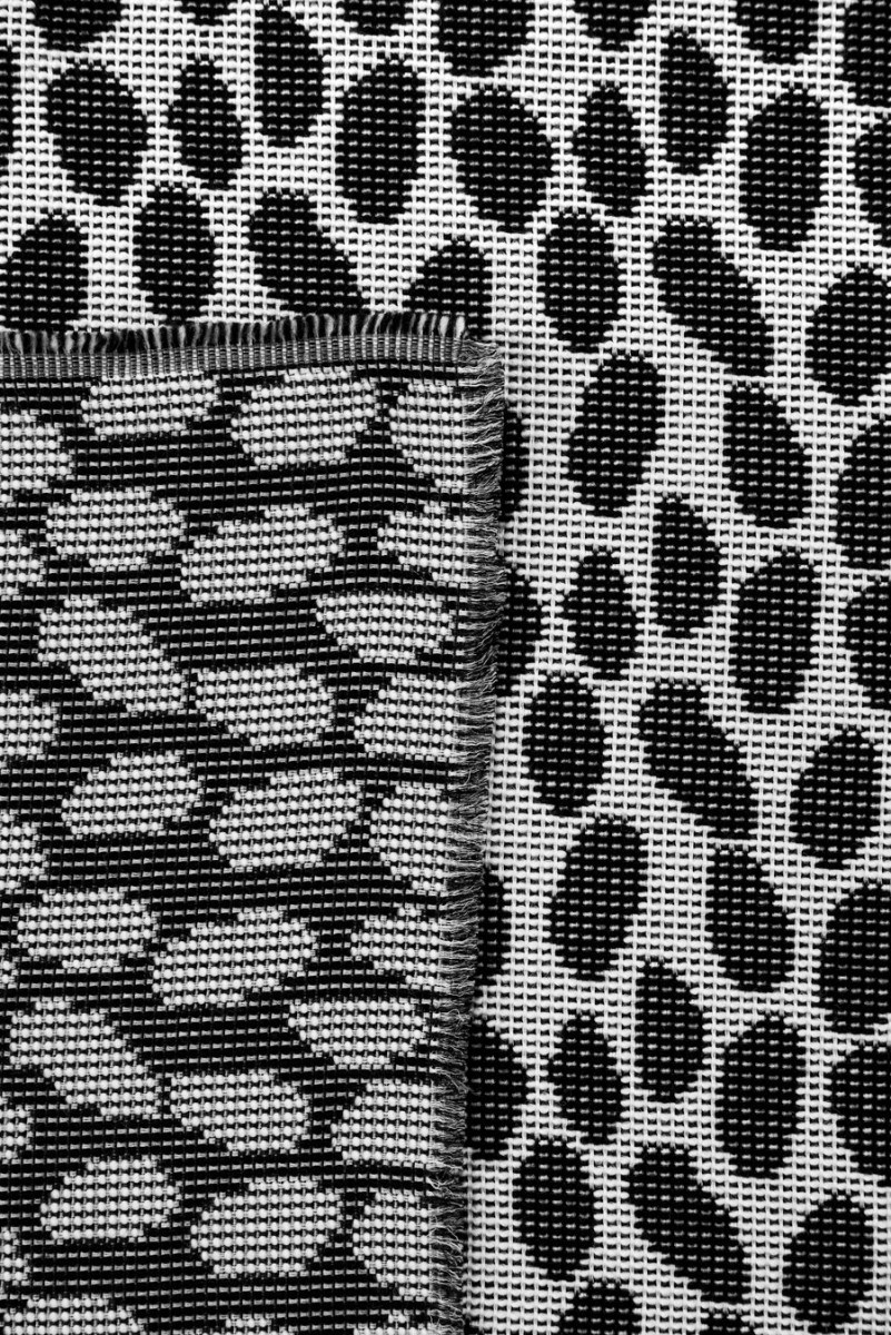 Italiensk dobbeltsidet stof med hvide og sorte pletter, vævet af naturlig uld med en blanding af polyester.