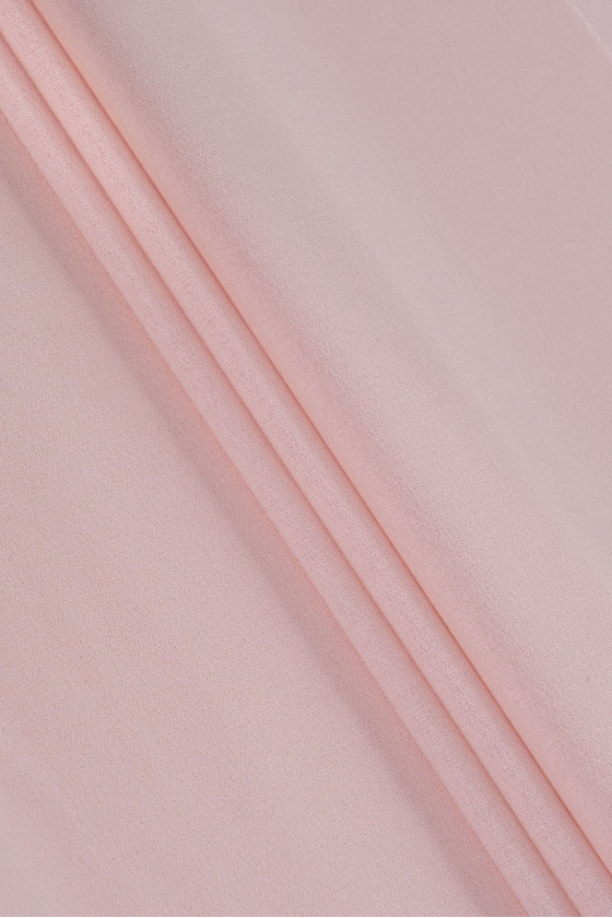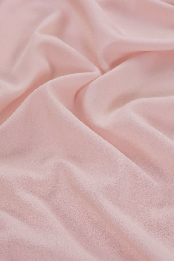 Italiensk kostume stof 100% uld i pulverrosa farve. Smuk, løsere georgette vævning - lidt gennemsigtigt stof. Perfekt til at sy en kjole eller nederdel.