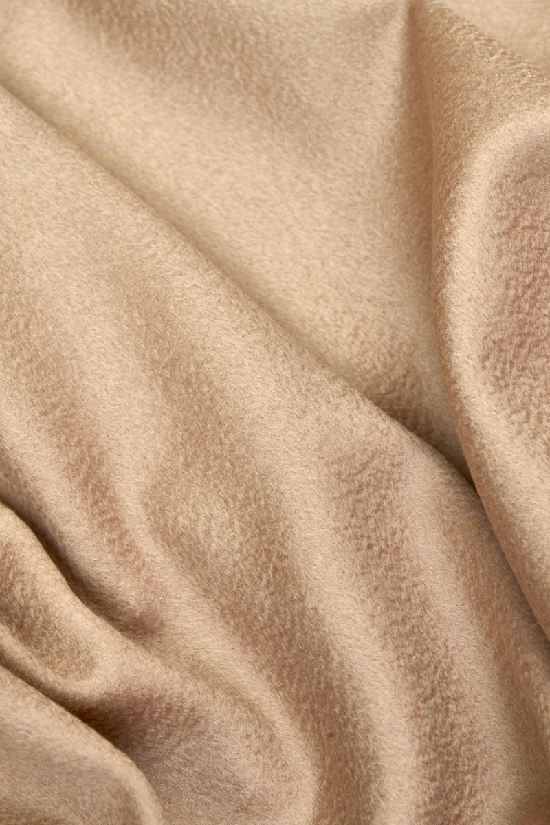 Italiensk vegetabilsk uld med en blanding af kashmir i beige med en bølget struktur, der skaber et tredimensionelt udseende af stoffet, kendt som Zibellino-effekten. Et meget blødt, ædelt stof med en delikat glans er perfekt til syning af en efterår-vinterfrakke, jakke eller varm vest. Den bedste kvalitetssammensætning får stoffet til ikke kun at se smukt ud, men er også meget varmt. Stoffet er perfekt til folk, der kan lide klassikere i højeste udgave.