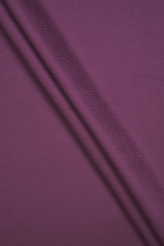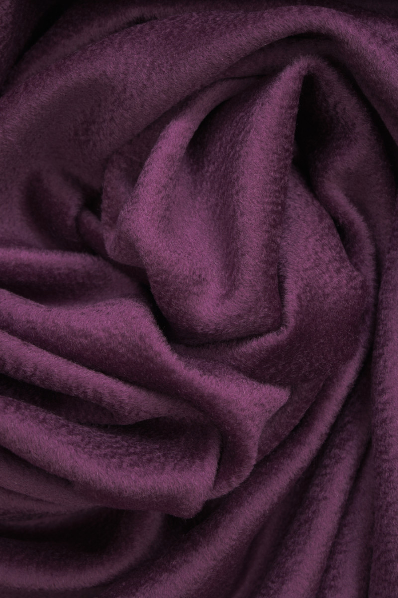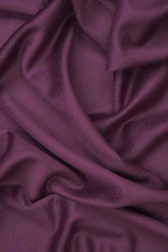 Italiensk frakkestof vævet af naturlig uld med tilsætning af kashmir i bleget lilla farve med zibellino-effekt (delikat bølget). Uldstoffer er ideelle til overtøj (frakke, jakke, vest), fordi de varmer og samtidig tillader huden at trække vejret.