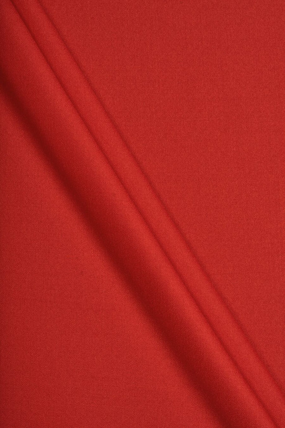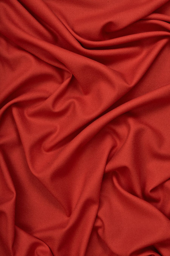 Italiensk uld med en georgette-vævning i rød med tilsætning af elastan. Stoffet er blødt, elastisk, mat og har en delikat georgette-vævning. Et klassisk forslag, hvorfra du kan skabe kjoler, nederdele, jakker og kostumer.