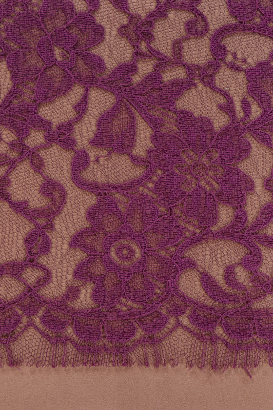 Tynde, delikate blonder i dæmpet lilla. Færdig med en tand på begge sider. Delikat stof. Perfekt til bluser, kjoler.