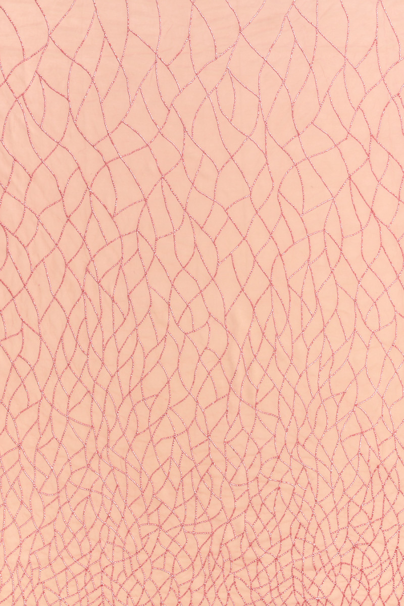 Italiensk stiv tyl med klassiske koraløjer. Det er subtilt dekoreret med cylindriske perler af samme farve. De danner et diamantlignende geometrisk mønster, der tykner mod den ene kant af stoffet (der er ingen dekorativ finish). Stoffet er meget effektivt, gennemsigtigt (kræver foring), tungt, let elastisk - vi syr det omkreds. Et fantastisk forslag til syning af en aftenkjole, nederdel eller bluse i en meget interessant udgave.