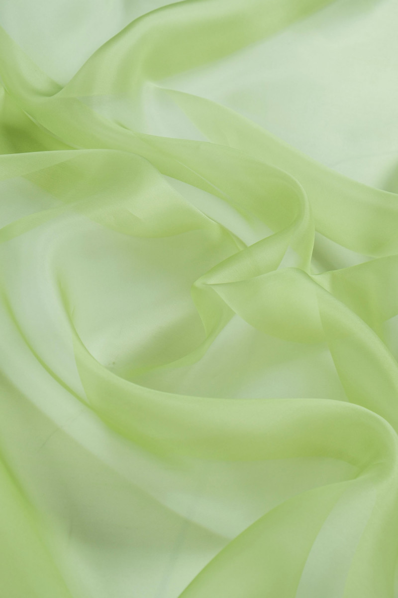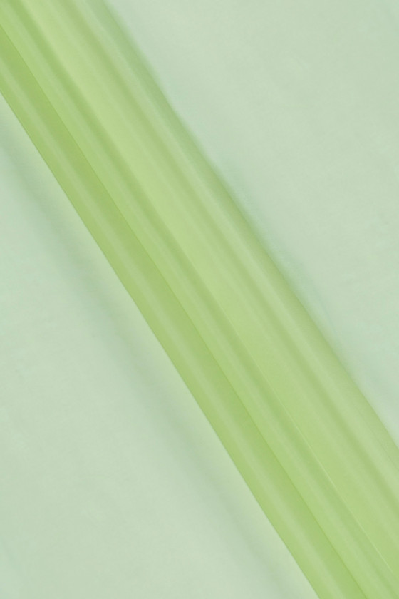 Italiensk 100% silkeorganza stof i pistaciefarve. Naturlig silkeorganza er et tyndt, gennemsigtigt, men stift stof med en delikat glans, der er karakteristisk for silkestoffer.