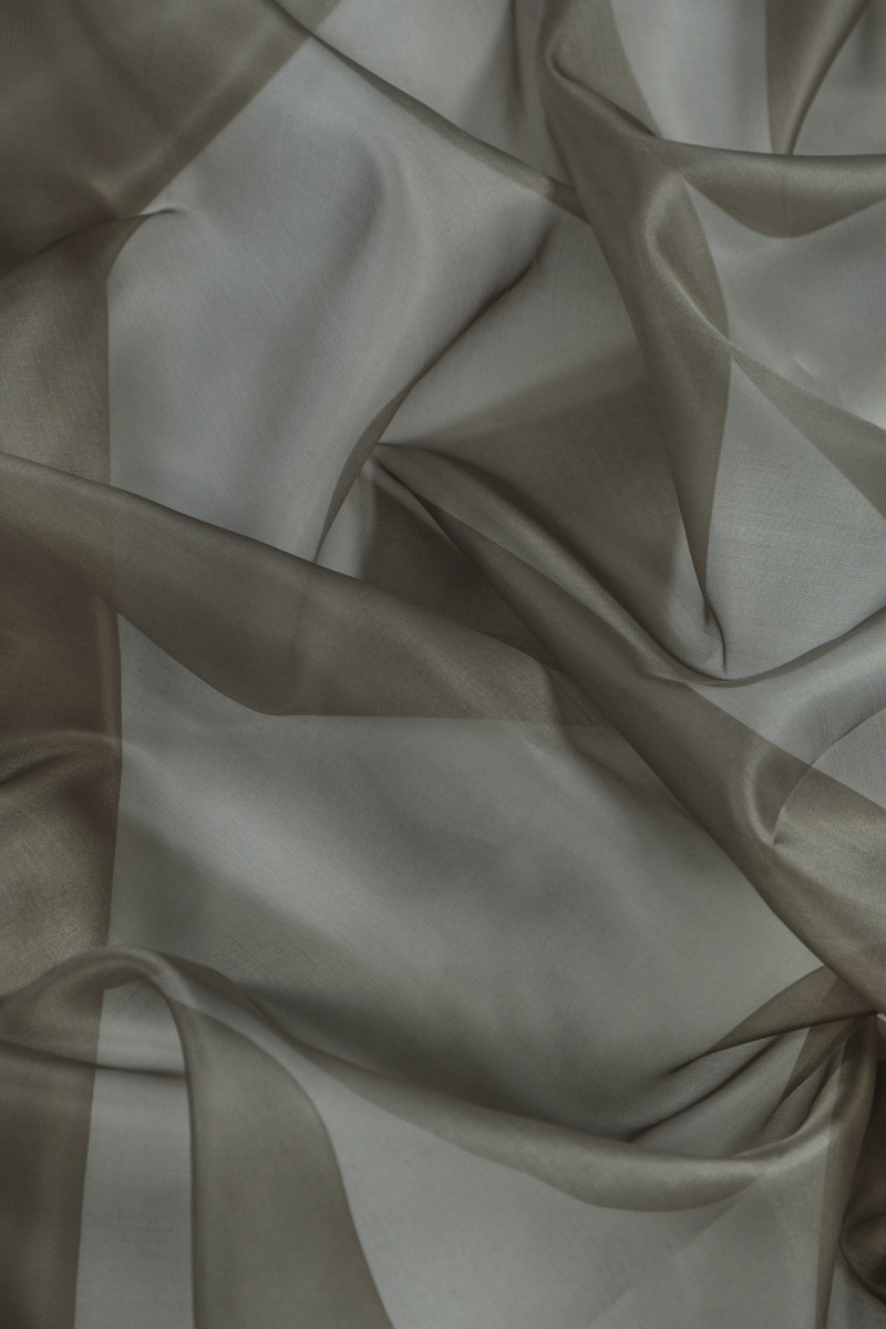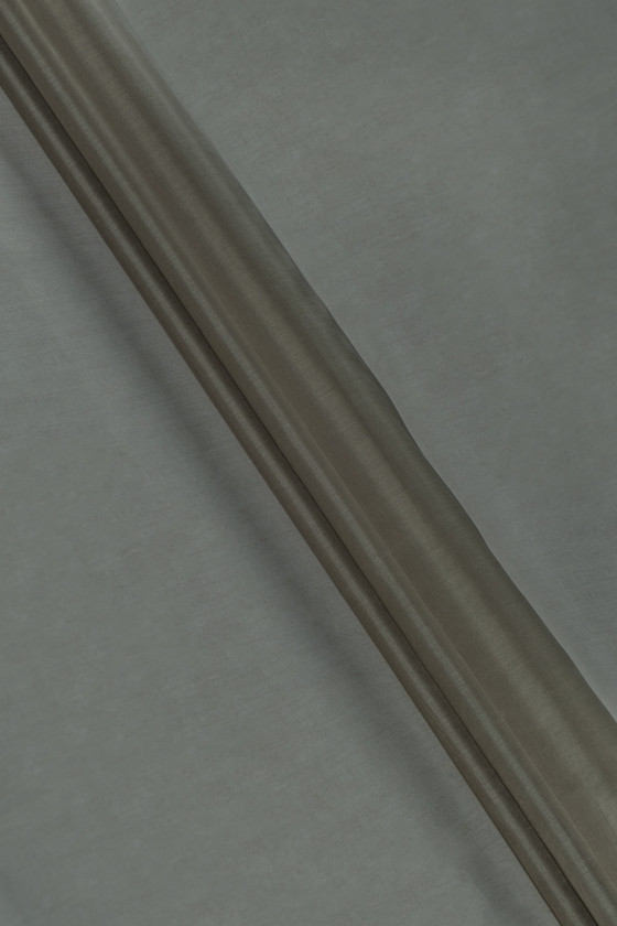 Italiensk organza i 100% silke i grå-oliven farve. Naturlig silkeorganza er et tyndt, gennemsigtigt, men stift stof med en delikat glans, der er karakteristisk for silkestoffer. Perfekt til syning af kjole, bluse, skjorte, nederdel.
