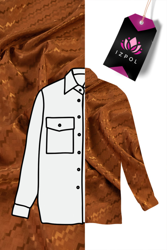 Italiensk 100% silkestof i rødt, jacquardvævet stof med zigzagmotiv arrangeret diagonalt. Et ikke-elastisk stof, tyndt, men uigennemsigtigt, let med en glans, der er karakteristisk for silkestoffer. Perfekt til at sy en skjorte, bluse, løs nederdel, kjole eller sjal.