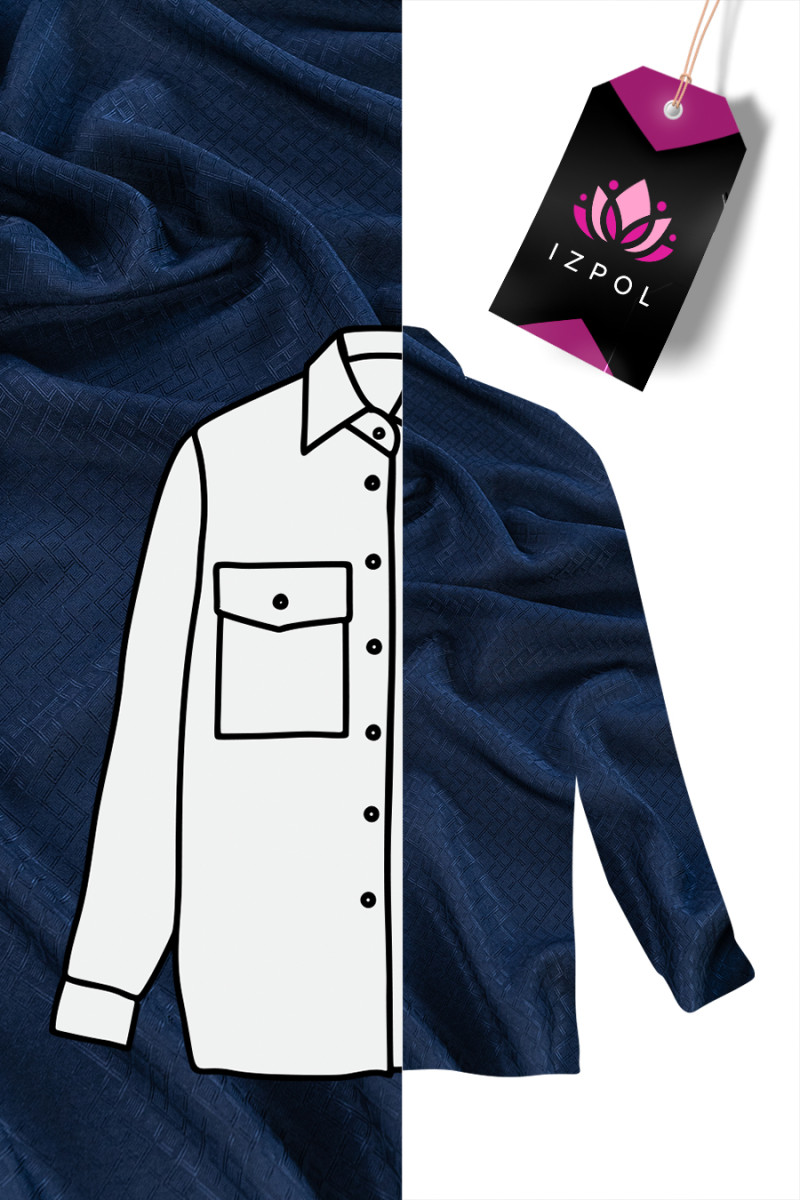 Italiensk 100% silkestof i marineblåt, jacquardvævet stof med geometrisk motiv - diamanter. Et ikke-elastisk, tyndt, let gennemsigtigt, let stof med en glans, der er karakteristisk for silkestoffer. Perfekt til at sy en skjorte, bluse, løs nederdel, kjole eller sjal. Komposition: 100% naturlig silke