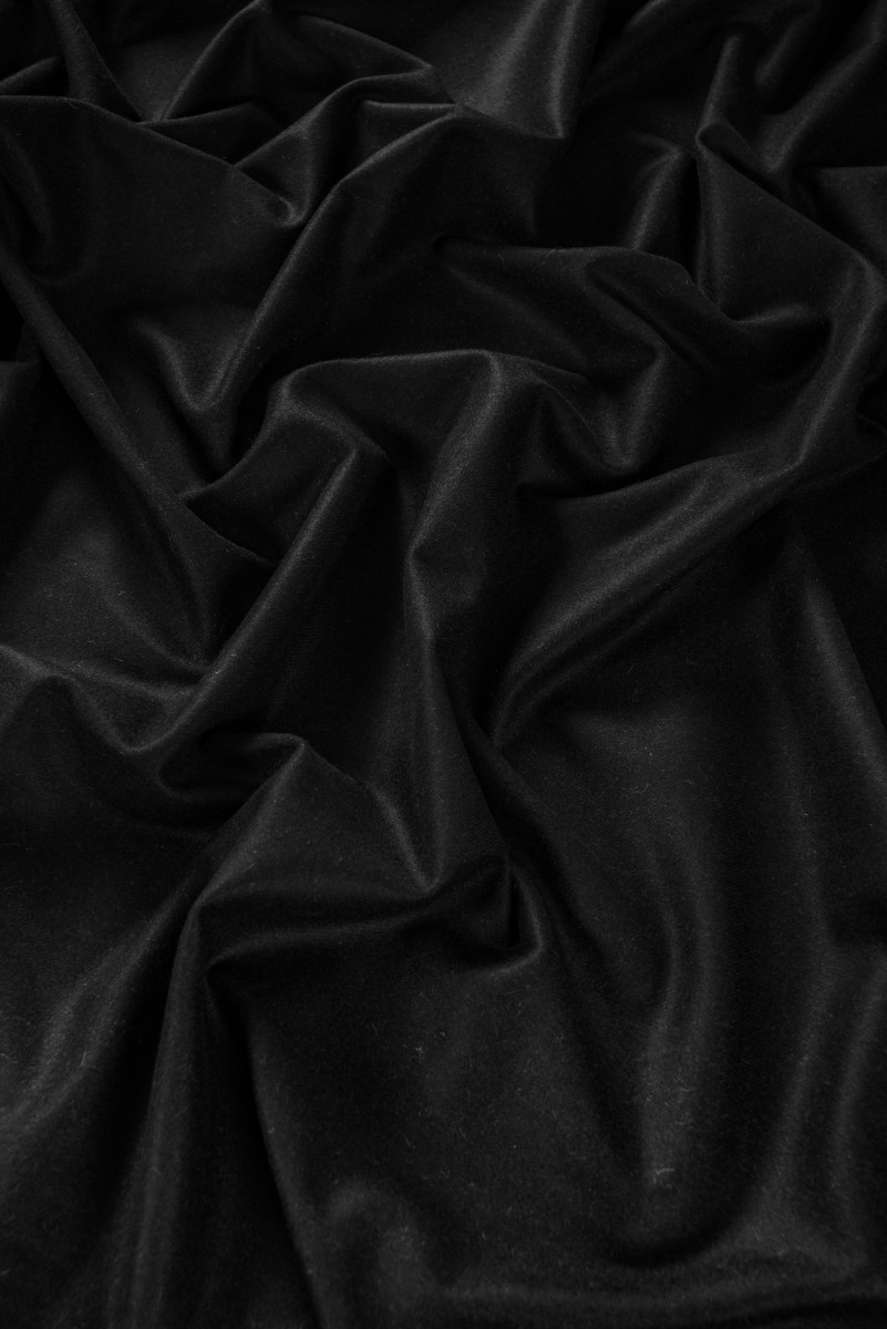 Sort stof designet til syning af frakker eller jakker. Stoffet består af: uld 80% og polyester 20%.