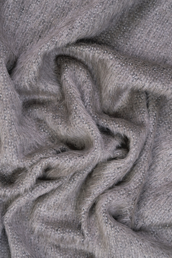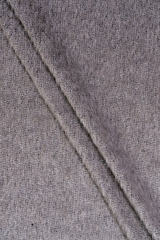 Eksklusivt italiensk frakkestof i beige og grå. Meget blød med sparsom, længere luv på sweaterstoffet i melange, beige med grå og sort. Et meget originalt produkt til syning af en frakke, jakke, vest eller tyk sweater. Stoffet er ideelt til folk, der kan lide originale materialer og snit.