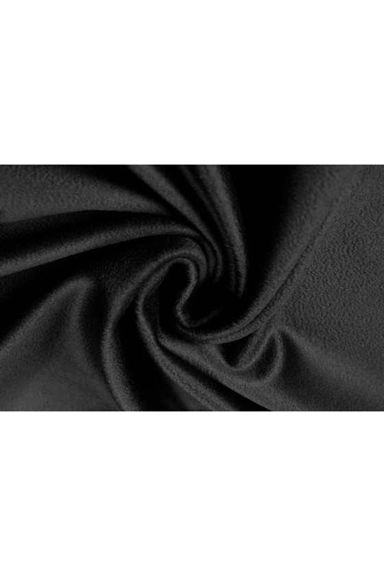 Italiensk frakkestof vævet af verginuld med tilsætning af mohair i sort. Uldstoffer er ideelle til overtøj (frakke, jakke, vest), fordi de varmer og samtidig tillader huden at trække vejret. Renseri anbefales.