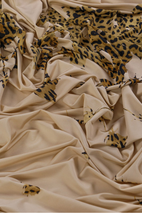 Viskose strikket stof med tilsætning af elastan er et tyndt, elastisk og flydende materiale. Det strikkede stof har en glat jerseyvævning og er yderst behagelig at røre ved. Materialet er lavet af garn af naturlig oprindelse. Viskose strikket stof er meget elastisk. Trådene af viskosegarn er ekstremt bløde og draperende, mens de elastiske fibre giver materialet krølmodstand og elasticitet.