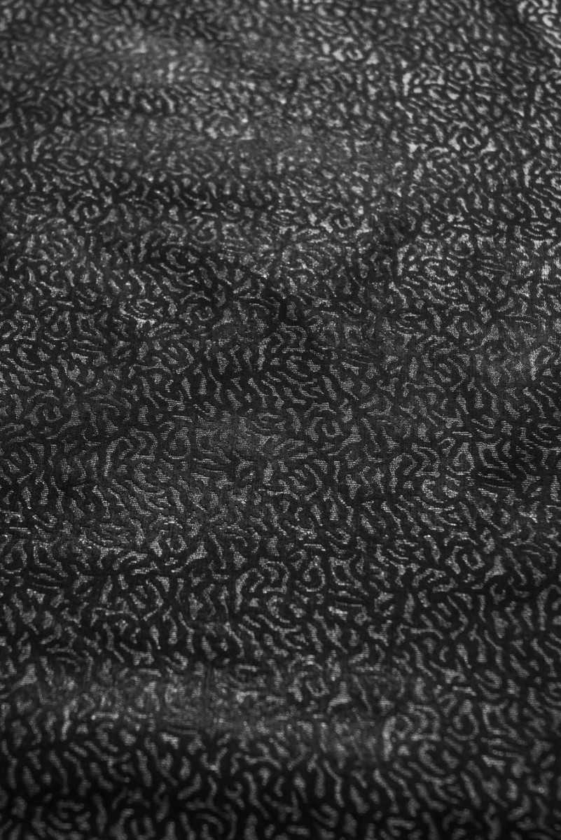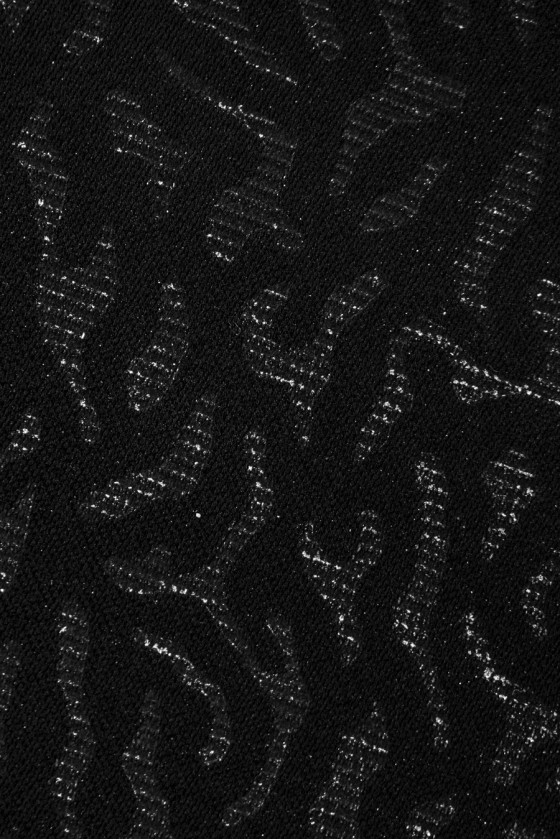 Italiensk, originalt viskosestof i sort og sølv med dyreprint. Stoffet er lidt stift, stramt, fungerer forsigtigt. Anbefales til syning af jakker, jakker eller som dekorativt stof