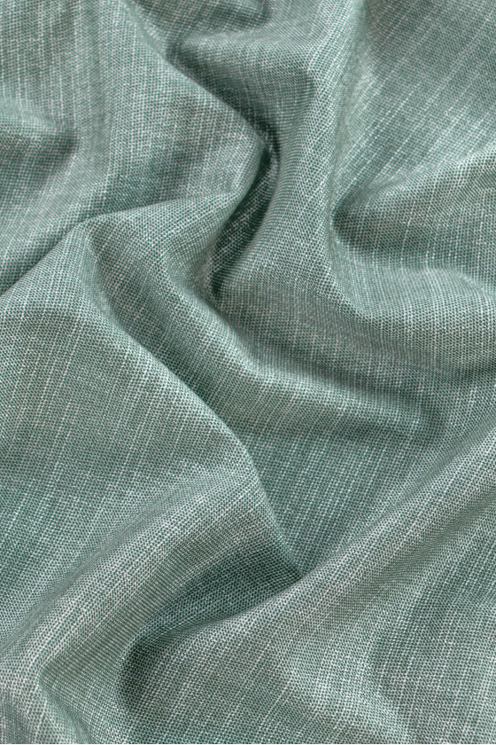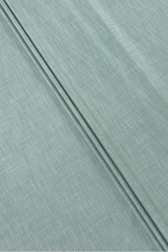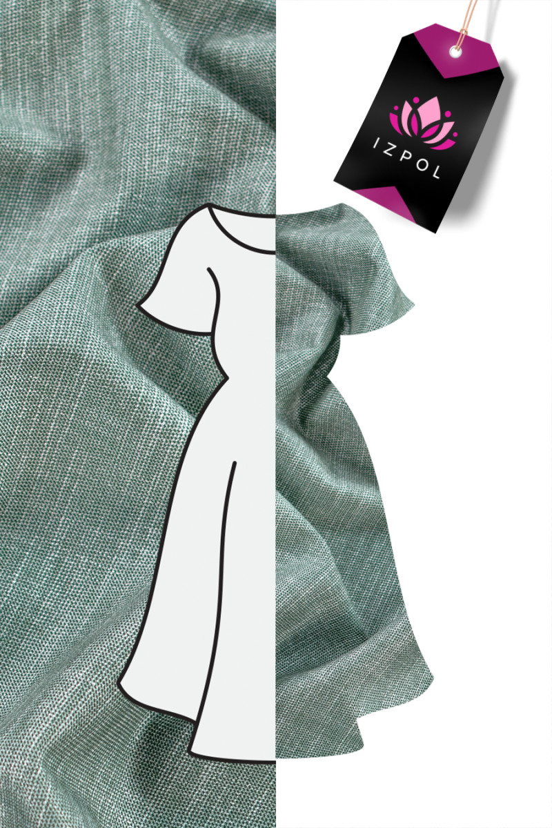 Italiensk viskosestof med en blanding af polyester og elastan i grøn melange farve. Stoffet er blødt, uigennemsigtigt, elastisk, med en vævning, der minder om linned.