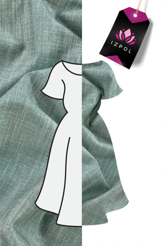 Italiensk viskosestof med en blanding af polyester og elastan i grøn melange farve. Stoffet er blødt, uigennemsigtigt, elastisk, med en vævning, der minder om linned. Stoffet er perfekt til syning af kjole, nederdel, bukser, jakke.