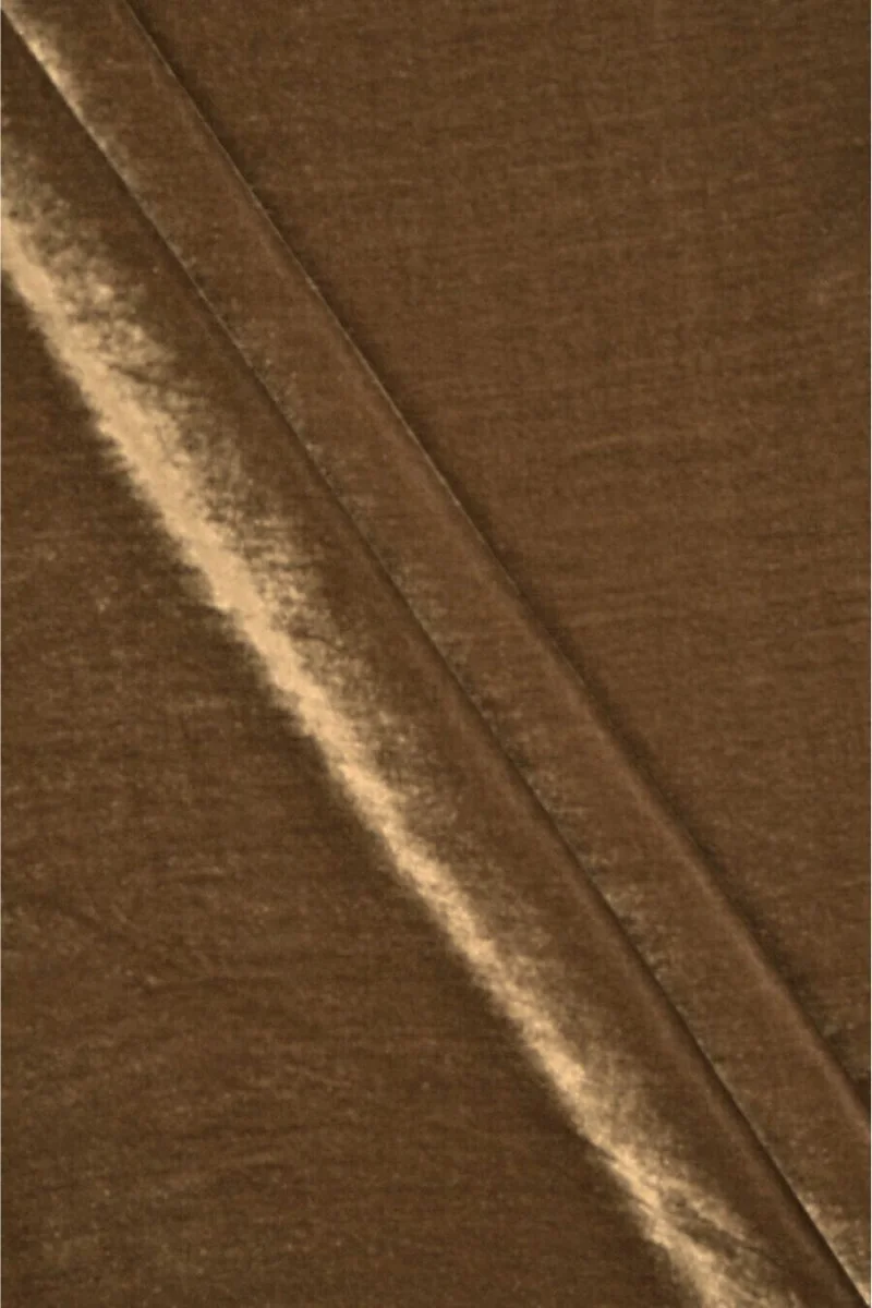 Italiensk, eksklusiv velour i forskellige farver. Stoffet er blødt, flydende, ikke-elastisk, tyndt, men uigennemsigtigt. Det draperer smukt, og den ædle farve får stoffet til at se meget elegant ud. Et vidunderligt forslag til at skabe en formel kjole, nederdel eller bluse.