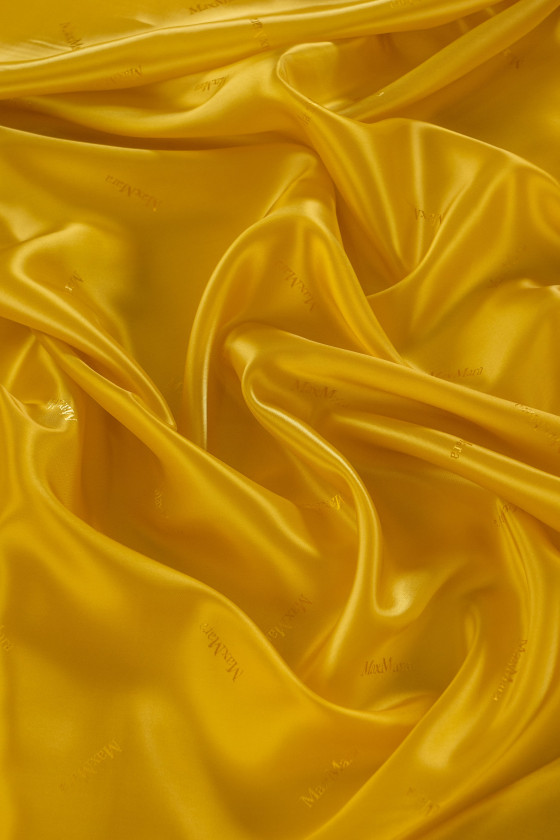 Italiensk viskosefor i gult, signeret med navnet på et velkendt modehus. Blødt stof med glat vævning, med en let glans. Perfekt til foring af et kostume, jakke, jakke eller frakke.