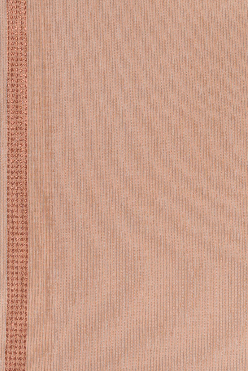 Italiensk jacquard kostume stof i kupon størrelse 80cm*145cm. Et interessant motiv af små striber i grålaksfarve, færdig med en dekorativ, skinnende kant 7 cm bred.