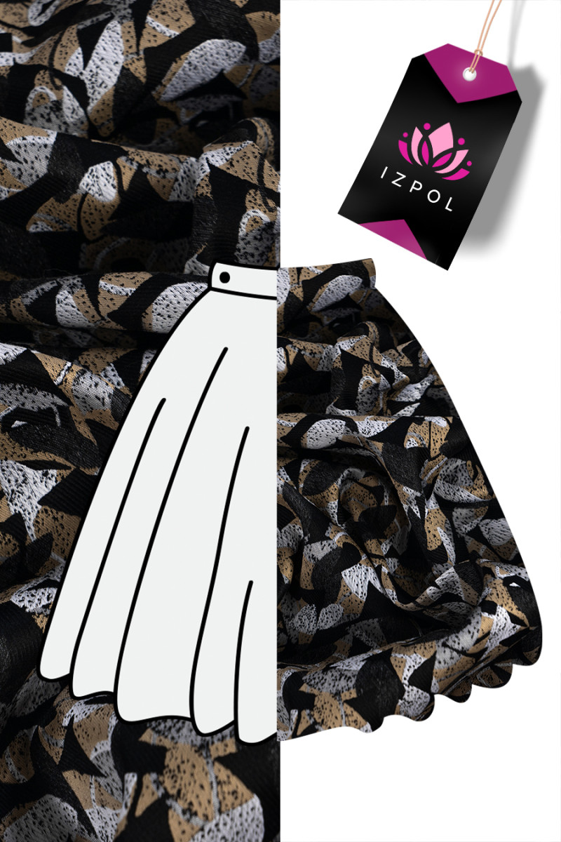 Italiensk jacquardkostumestof i sort med smarte mønstre i grå, beige og écru. Tyndt, let stift stof med twillvævning. Perfekt til syning af kostume, kjole, nederdel, jakke eller til dekorative formål. Komposition: 70% bomuld, 30% viskose