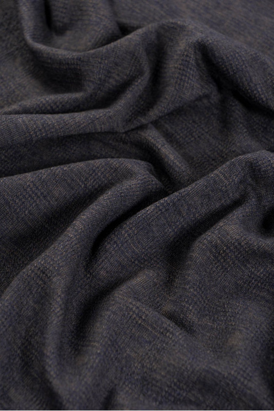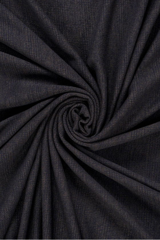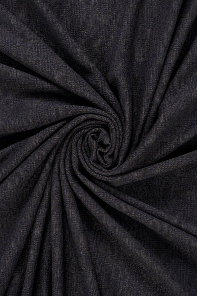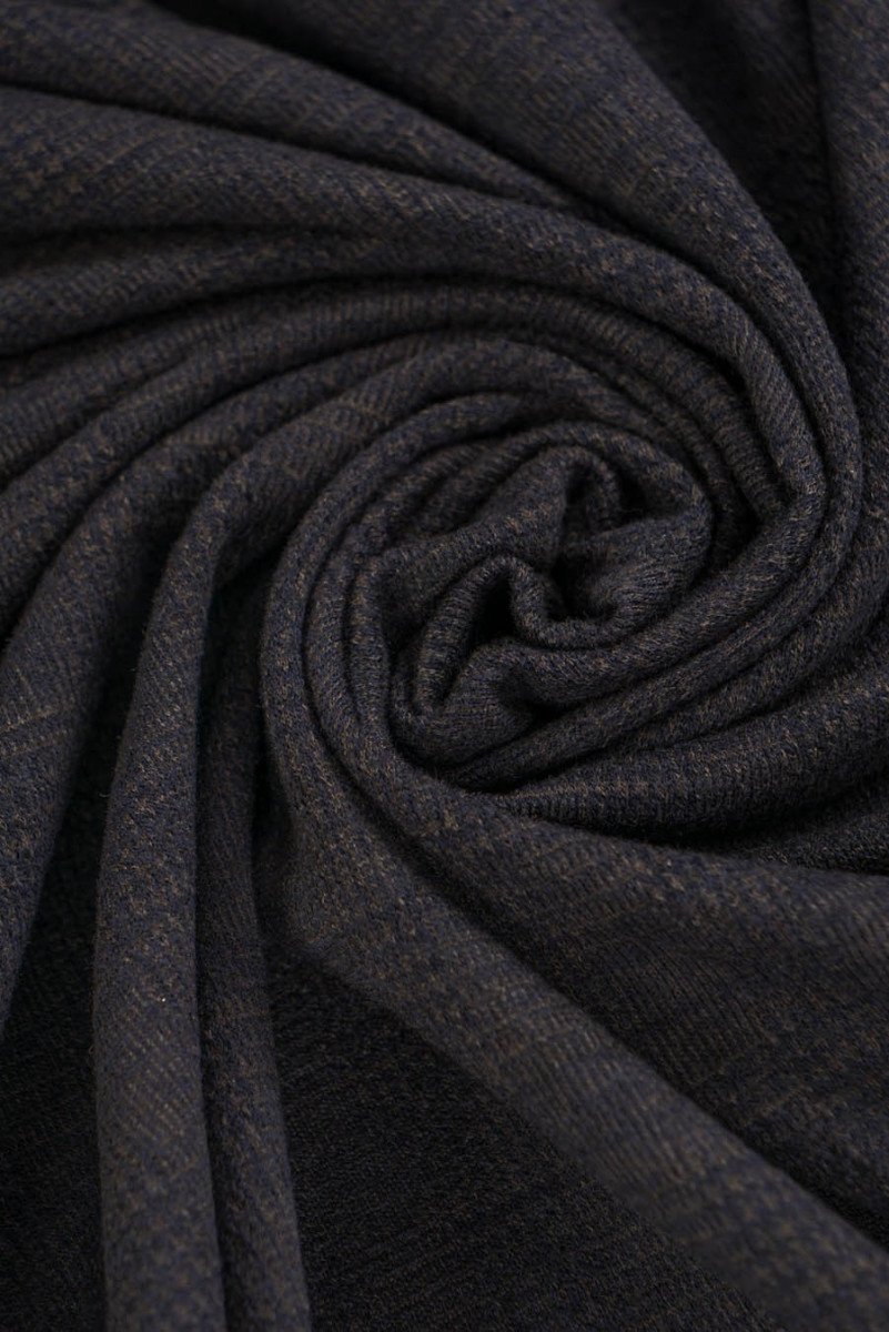 Italiensk sweater strikket stof af meget god kvalitet lavet af naturlig uld. Blød, kødfuld med en kompakt vævning med et ternet motiv. Perfekt til syning af kjole, nederdel, sweater. Farver: brun, marineblå.