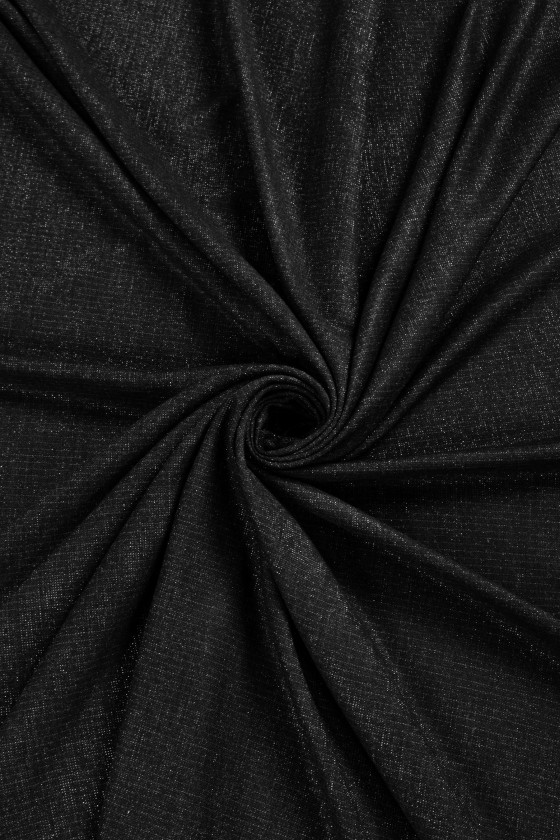 Italiensk kostumeuld i sort med striber 0,5 cm brede, smukt dekoreret med sølv lurex tråd. Blødt, kødfuldt, ikke-elastisk stof, af efterår-vinter-genren - perfekt til syning af et kostume, jakkesæt, bukser, nederdel, kjole.