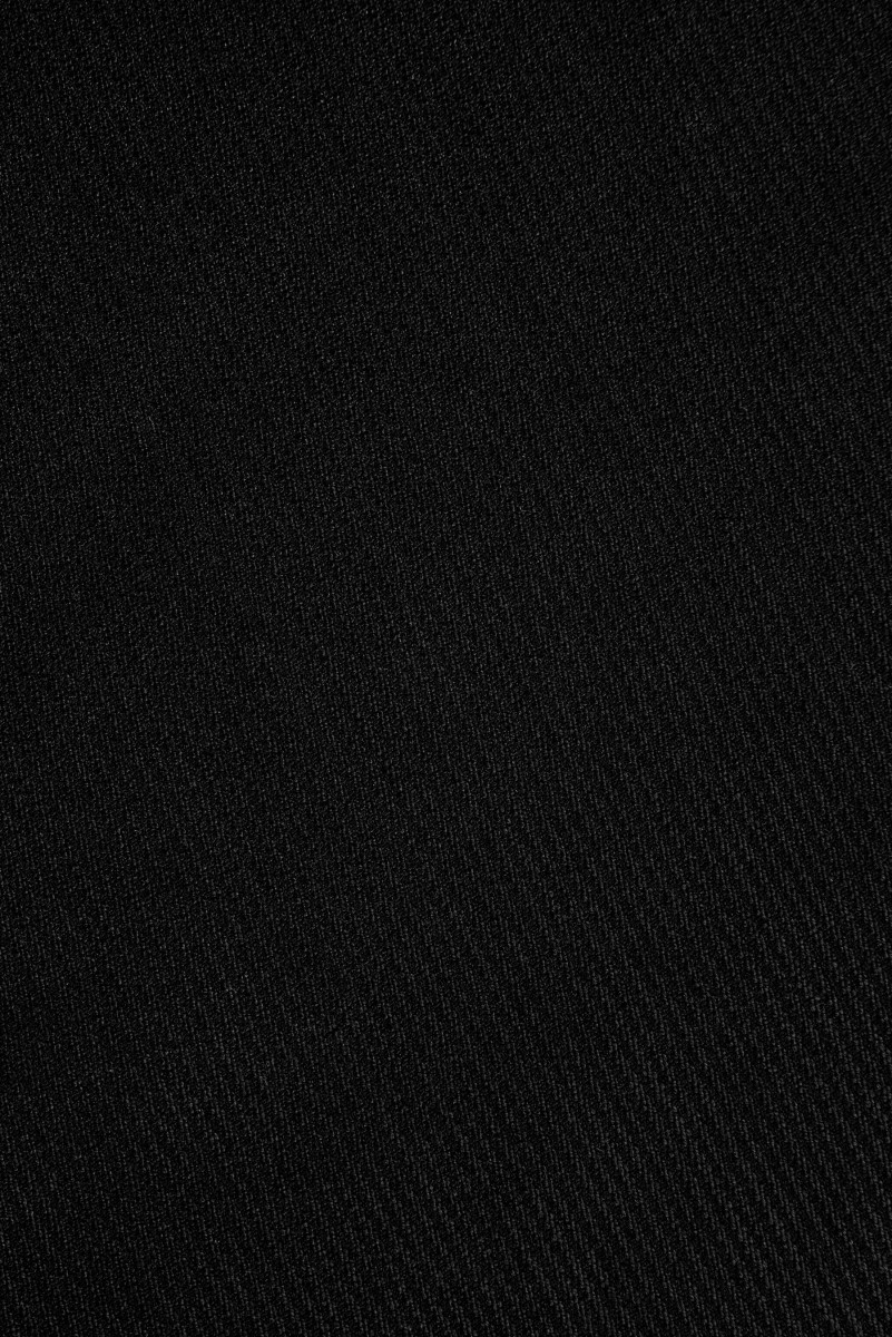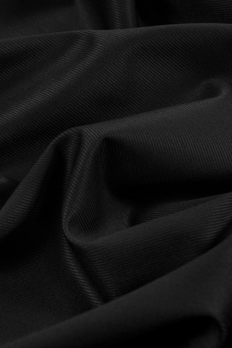 Italiensk kostumeuld i grafitfarve med en fin stribe. Blødt, klastisk tykt, ikke-elastisk stof med let glans - perfekt til syning af kostume, dragt, bukser, nederdel, kjole.