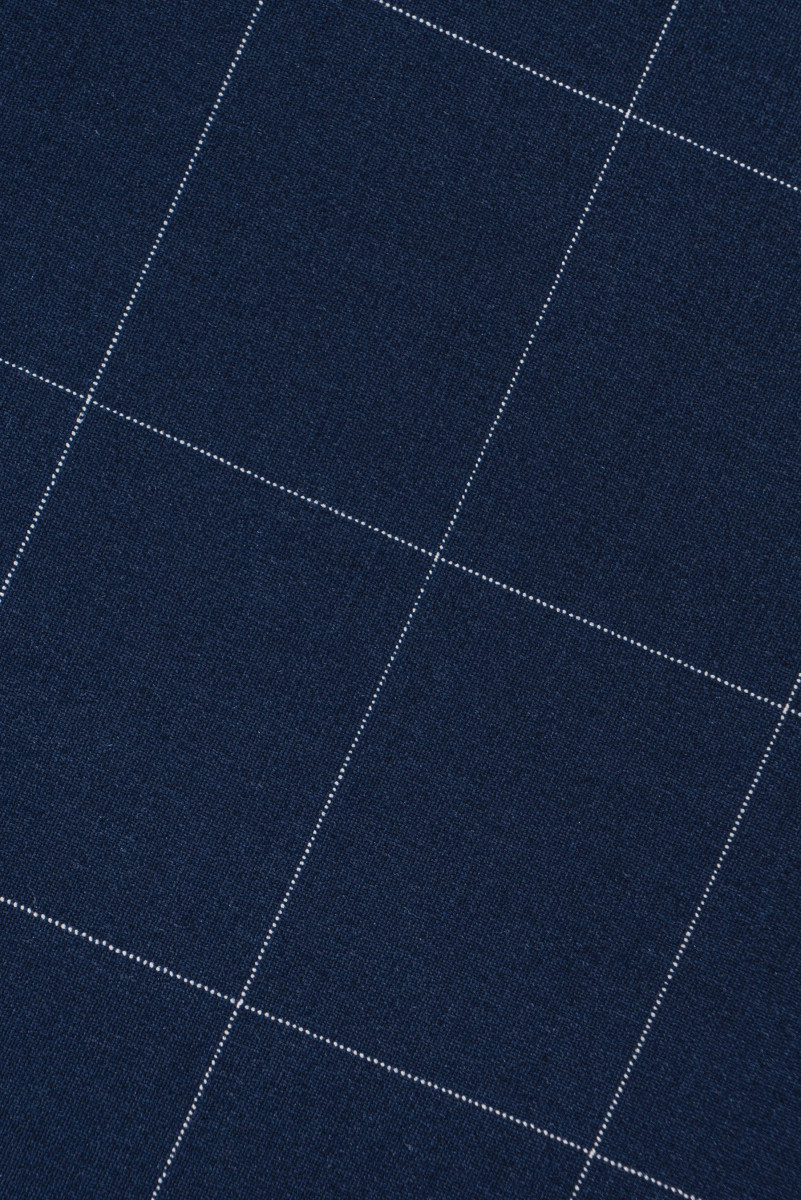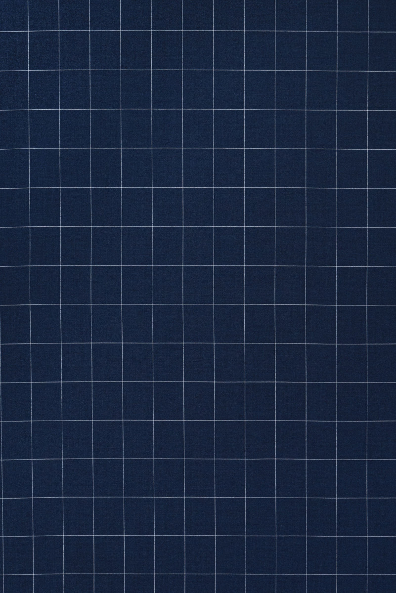 Italiensk kostumeuld i marineblå med hvidt ternet motiv med en størrelse på 5 cm * 4 cm. Mellemtykt, elastisk stof - perfekt til syning af kjole, nederdel, jakkesæt, bukser.