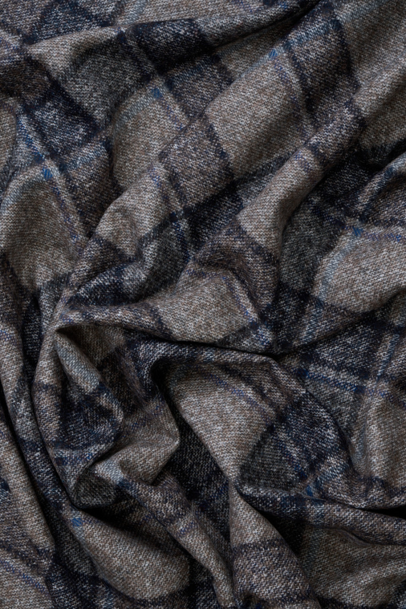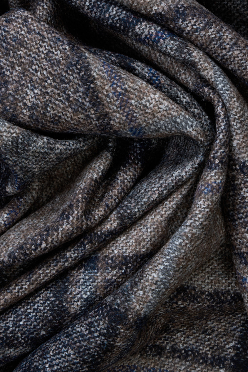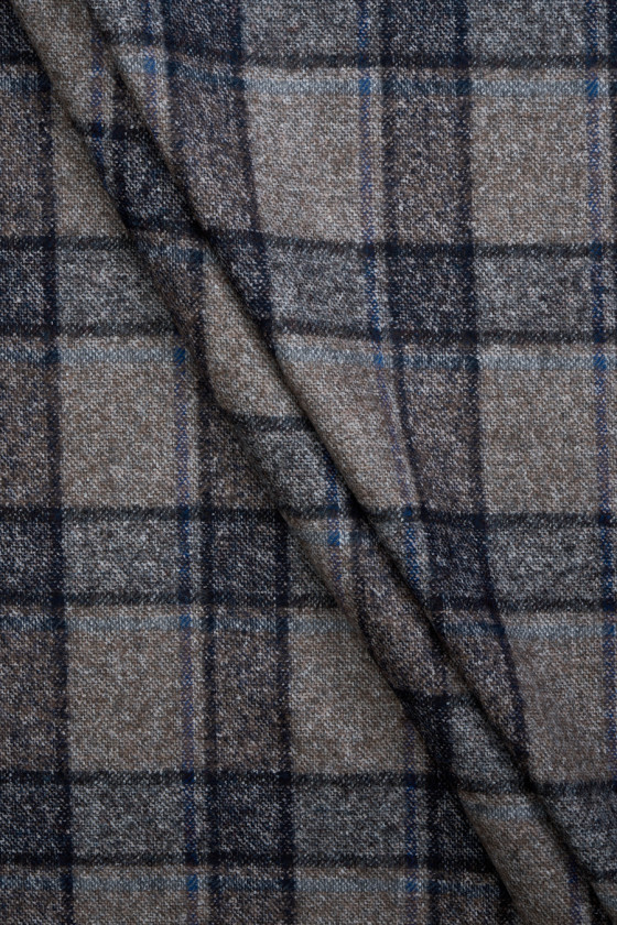Alpacauld med en blanding af bomuld og polyamid i nuancer af brun og marineblå. Kostumestoffet, meget blødt og behageligt at gribe fat i, passer smukt.