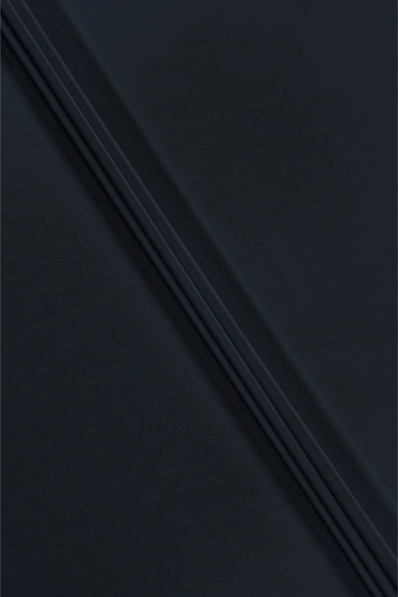 Italiensk kostumestof lavet af 100% naturlig uld. Materialet er vævet af to farver: marineblå og sort, som skaber en tofarvet effekt. Stoffet er ikke-elastisk, medium tykkelse med en glat, ædelt skinnende vævning. Den er perfekt til at sy et klassisk jakkesæt, kjole, nederdel eller bukser. Naturligt stof i en tidløs farve for folk, der kan lide mørke farver.